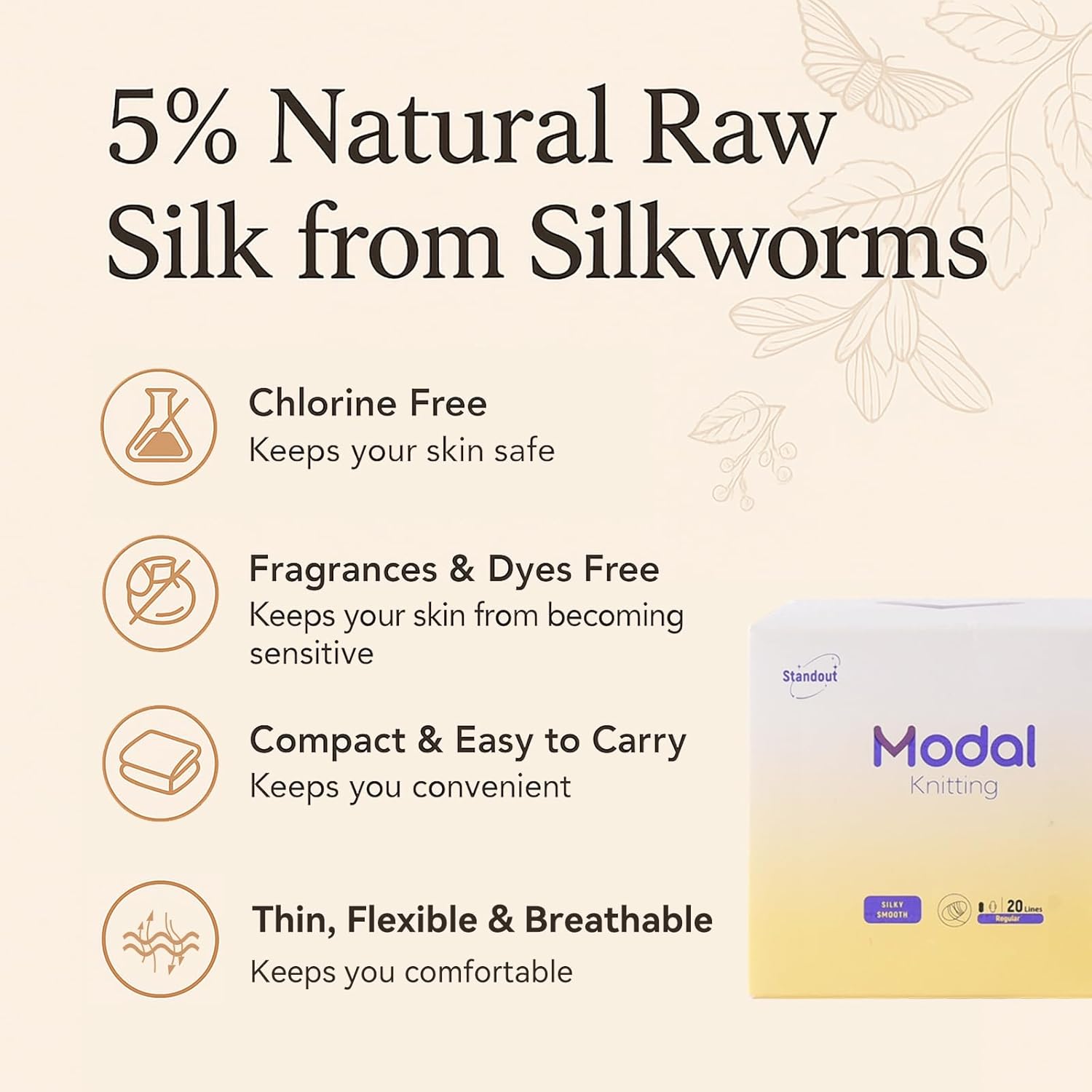 MODAL Panty Liners for Women, Unscented Sanitary Pads Without Wings, Daily Thin Panty Liners, 6.1 Inch(155 mm), Regular, 20 Count