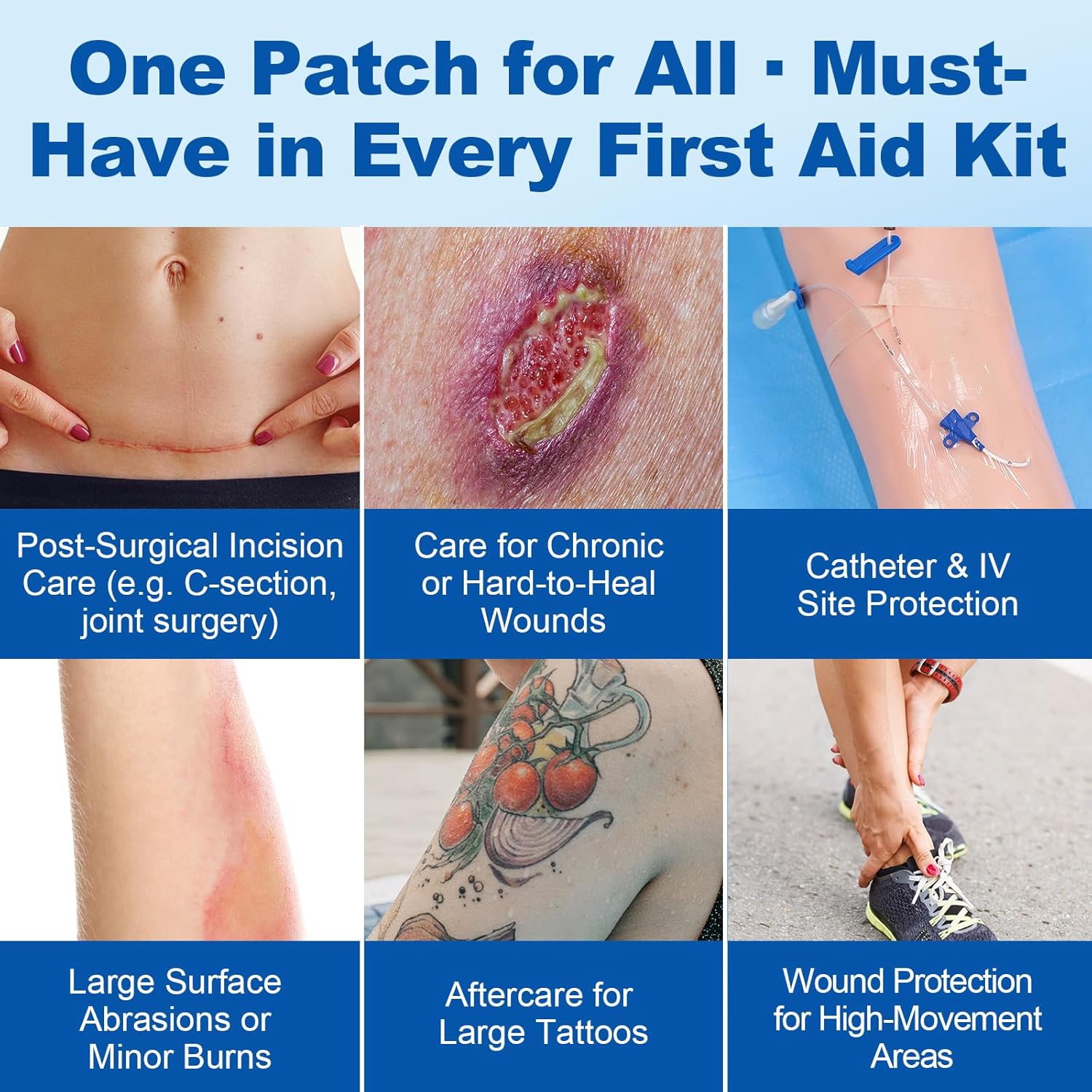 - ✅ VERSATILE FOR DAILY AND ACTIVE USE – Designed for larger wound areas, the Dimora Transparent Film Dressing (4"x8") offers reliable coverage for daily wound care and active lifestyles. This waterproof wound dressing is ideal whether you're moving outdoors, managing post-surgical recovery at home, or taking a shower, providing flexible protection that conforms to the body and stays in place.