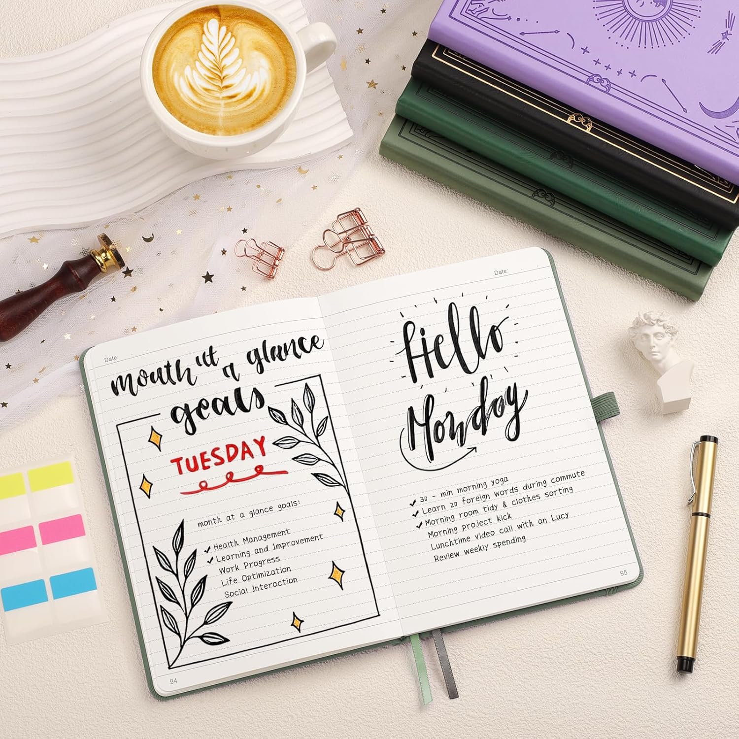 - Practical Features: This notebook for school comes with extras like a back pocket for storing sticky notes or cards, an elastic closure to protect pages, a pen holder to keep your writing tool close at hand, and 2 ribbon bookmarks to easily mark your place. This journaling notebook with a moon design comes with Sticky Notes for all your creative needs.