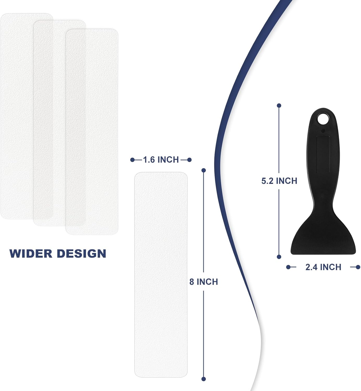 - Strong Adhesion & Long-Lasting Durability: With a special adhesive, these 1.6"x8" bathtub non slip stickers offer strong adhesion. Resistant to curling and peeling over time, these anti slip shower stickers ensure lasting safety in wet areas