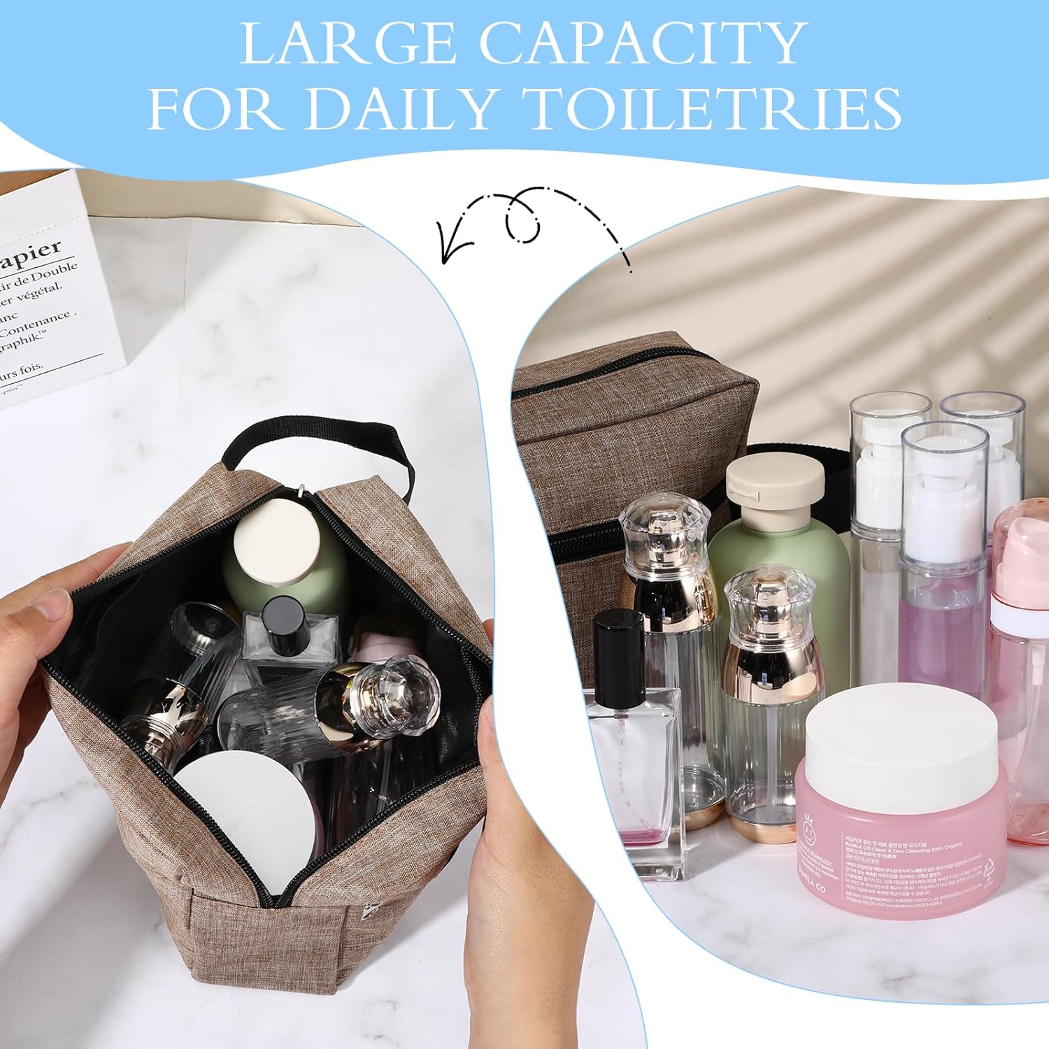 - Zipper Design: with a solid metal zipper, convenient for you to open and close the travel toiletry bag, better preserve the internal items, keep the items away from falling or losing. There is a zippered pocket on the side to store smaller toiletries and cosmetics.