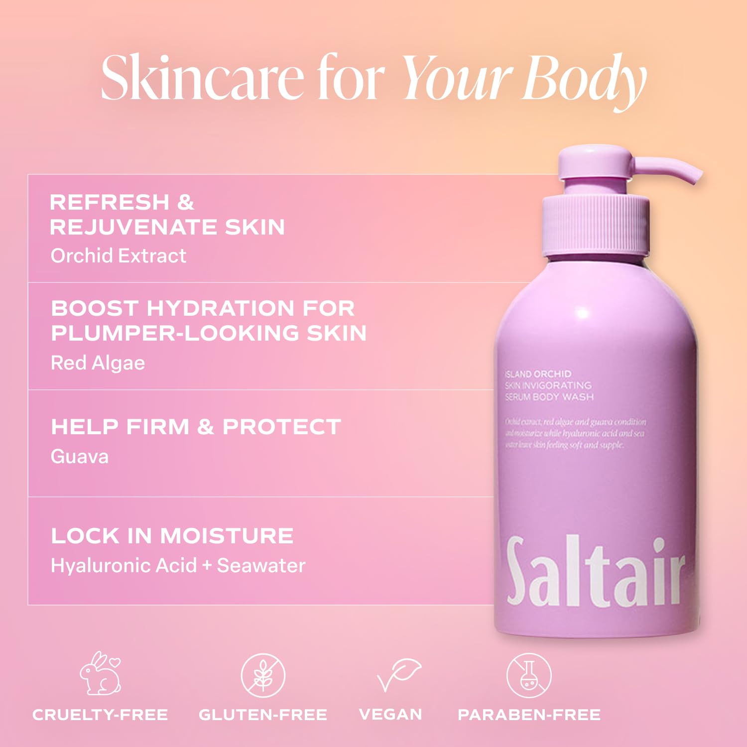- GOOD FOR SKIN: All our products, including this two-pack body wash, are cruelty-free, gluten-free, vegan, and paraben-free. Everything we create is made with a body-positive vibe. Saltair - Body Care is Skin Care. Every Body is Welcome Here