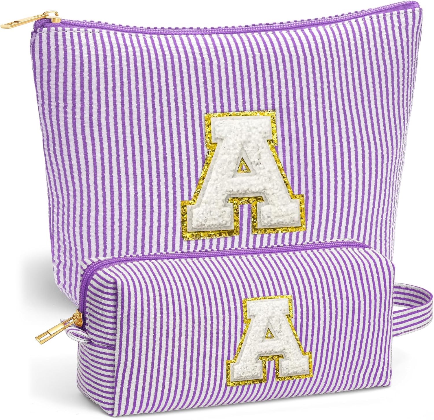 Travel Makeup Bag Set - Travel Essentials, Initial Make up Cosmetic Bag Makeup Pouch Travel Toiletry Bag | Cute Purple Stuff Birthday Gifts for Women Mom Daughter, Purple Letter A