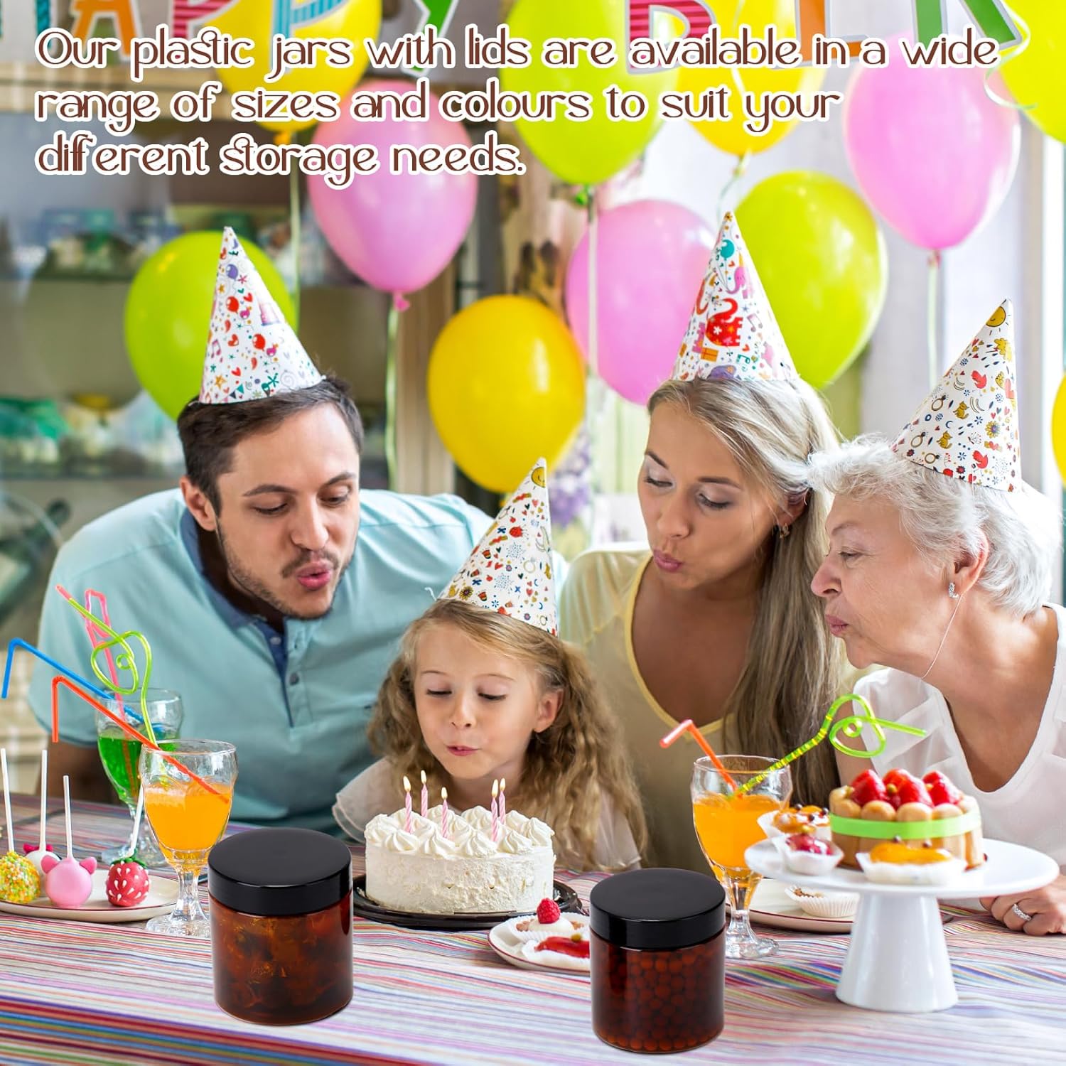SATINIOR 12 Pack 8 oz Plastic Container Jars with Lids Round Clear Travel Cosmetic Container Slime Jars for Toiletries, Lotion, Cream, Ointments, Makeup, Rhinestone, Samples, Kitchen Storage(Amber)
