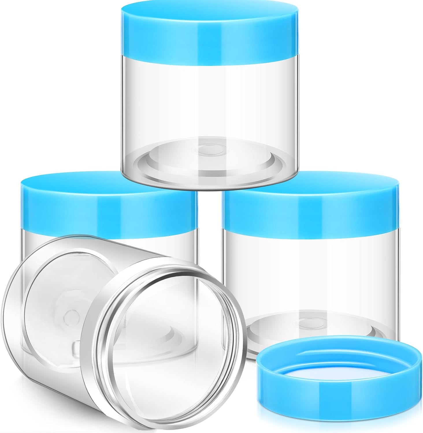 SATINIOR 12 Pack 8 oz Plastic Container Jars with Lids Round Clear Travel Cosmetic Container Slime Jars for Toiletries, Lotion, Cream, Ointments, Makeup, Rhinestone, Samples, Kitchen Storage(Blue)