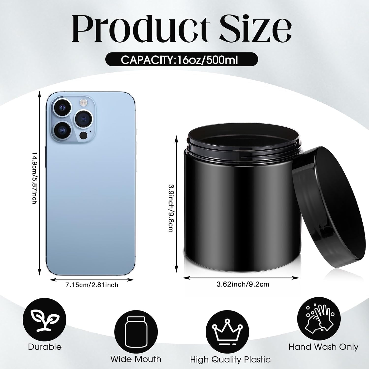- Easy to Use: the plastic jars are straight sided and round with thick walls; They are reliable and resistant to impact