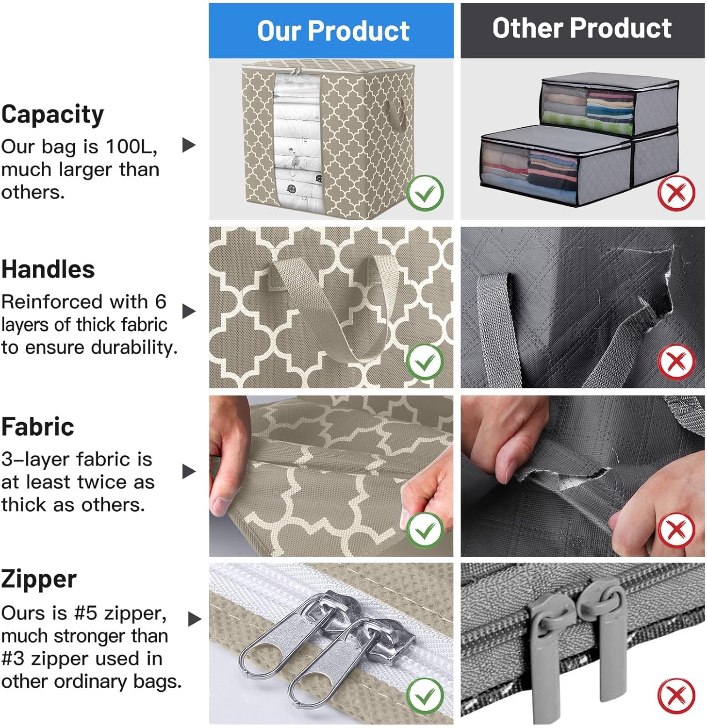 - Large Capacity: Each storage bag measures 20.5”x 20.5” x 14.6” / 52 x 52 x 37 cm , with 100L capacity; The organizer is spacious to store your comforters, pillows, bedding, blankets, plush toys, sweaters, out of season clothing or any other soft items;