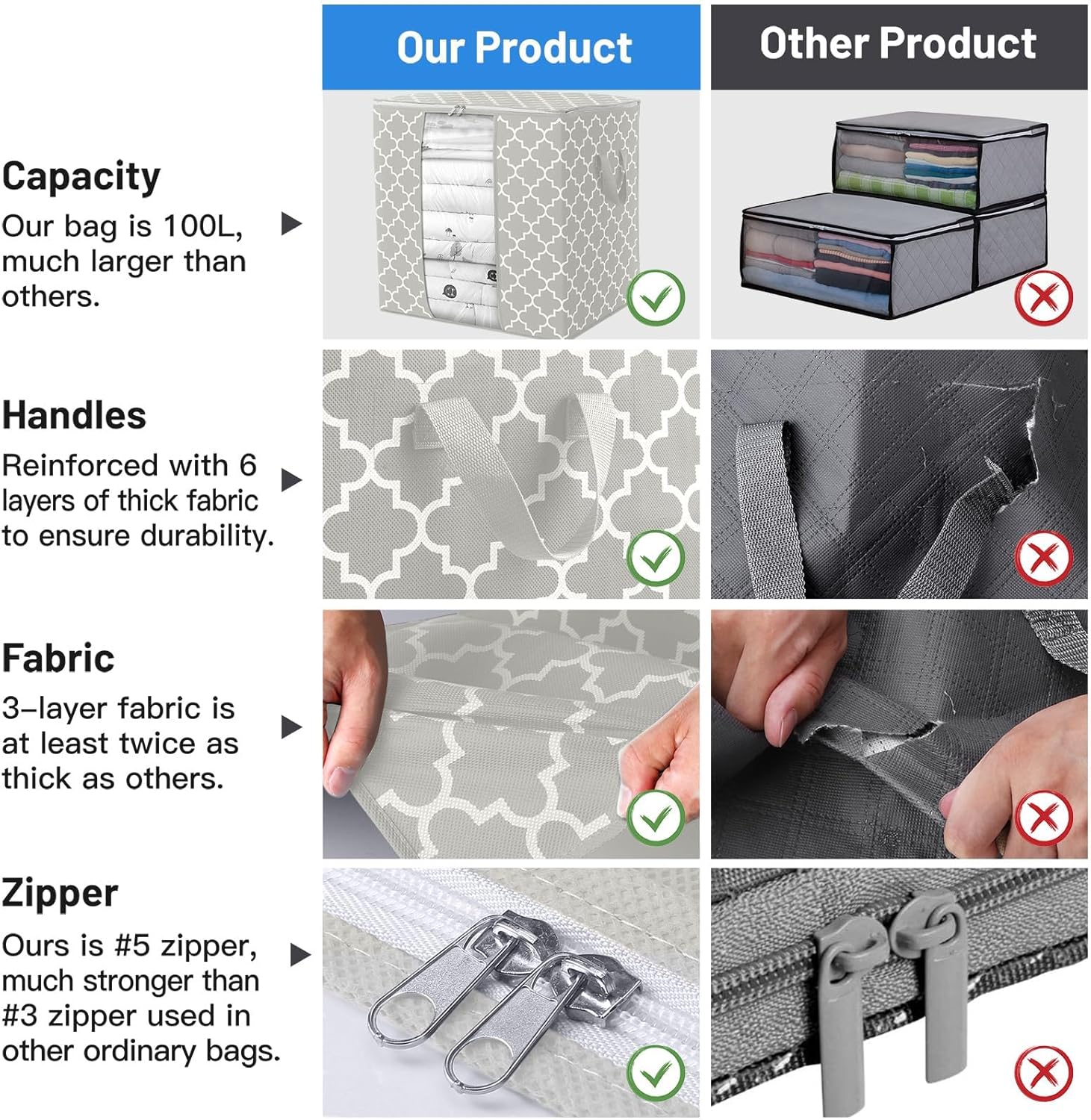- Large Capacity: Each storage bag measures 20.5”x 20.5” x 14.6” / 52 x 52 x 37 cm , with 100L capacity; The organizer is spacious to store your comforters, pillows, bedding, blankets, plush toys, sweaters, out of season clothing or any other soft items;