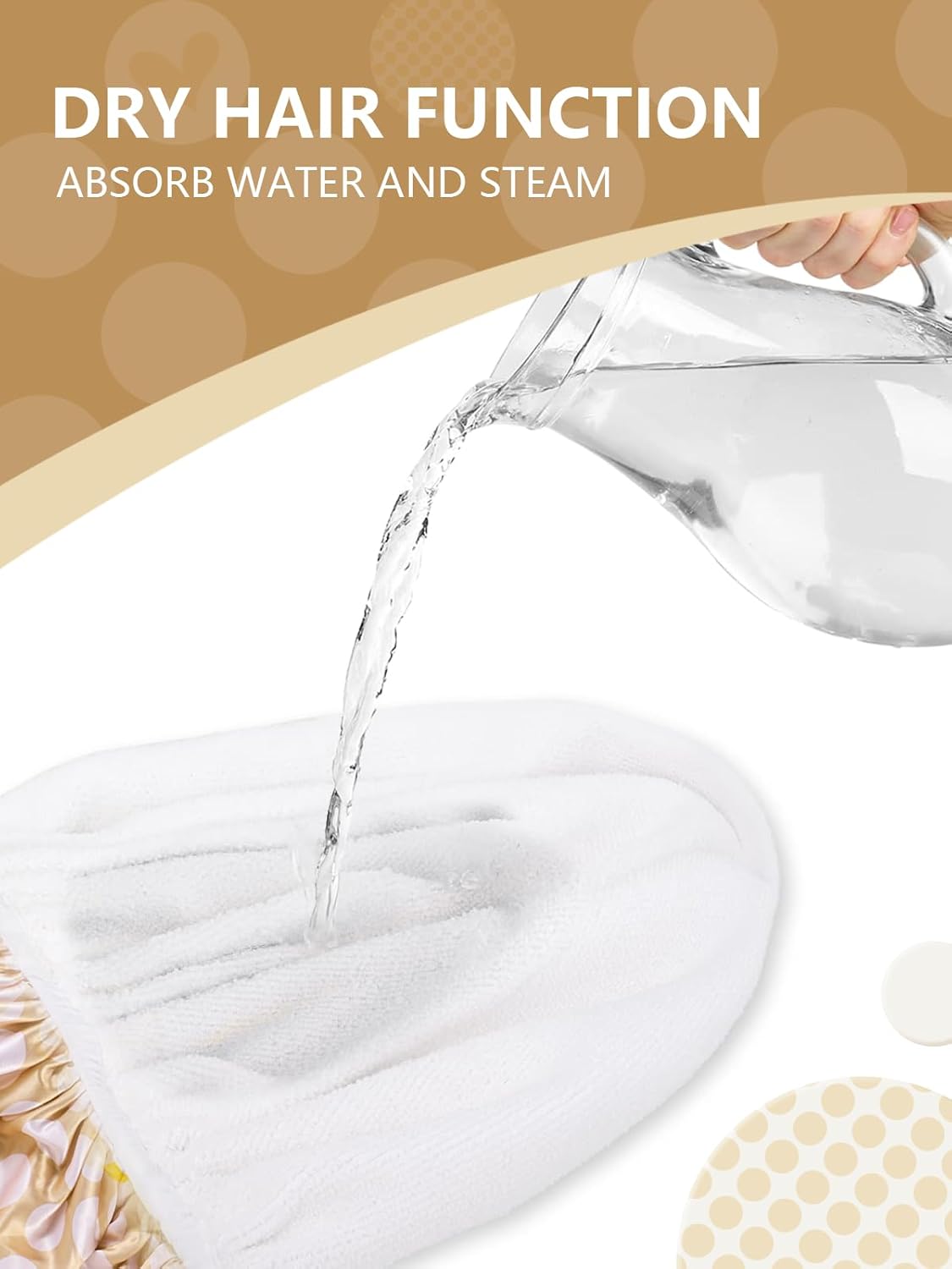 - Design Idea: This shower cap spirit from the brand “Years calm” features a simple golden brown color scheme combined with a heart and polka dot motifs, creating an graceful, understated atmosphere. Suitable for those with classical graceful