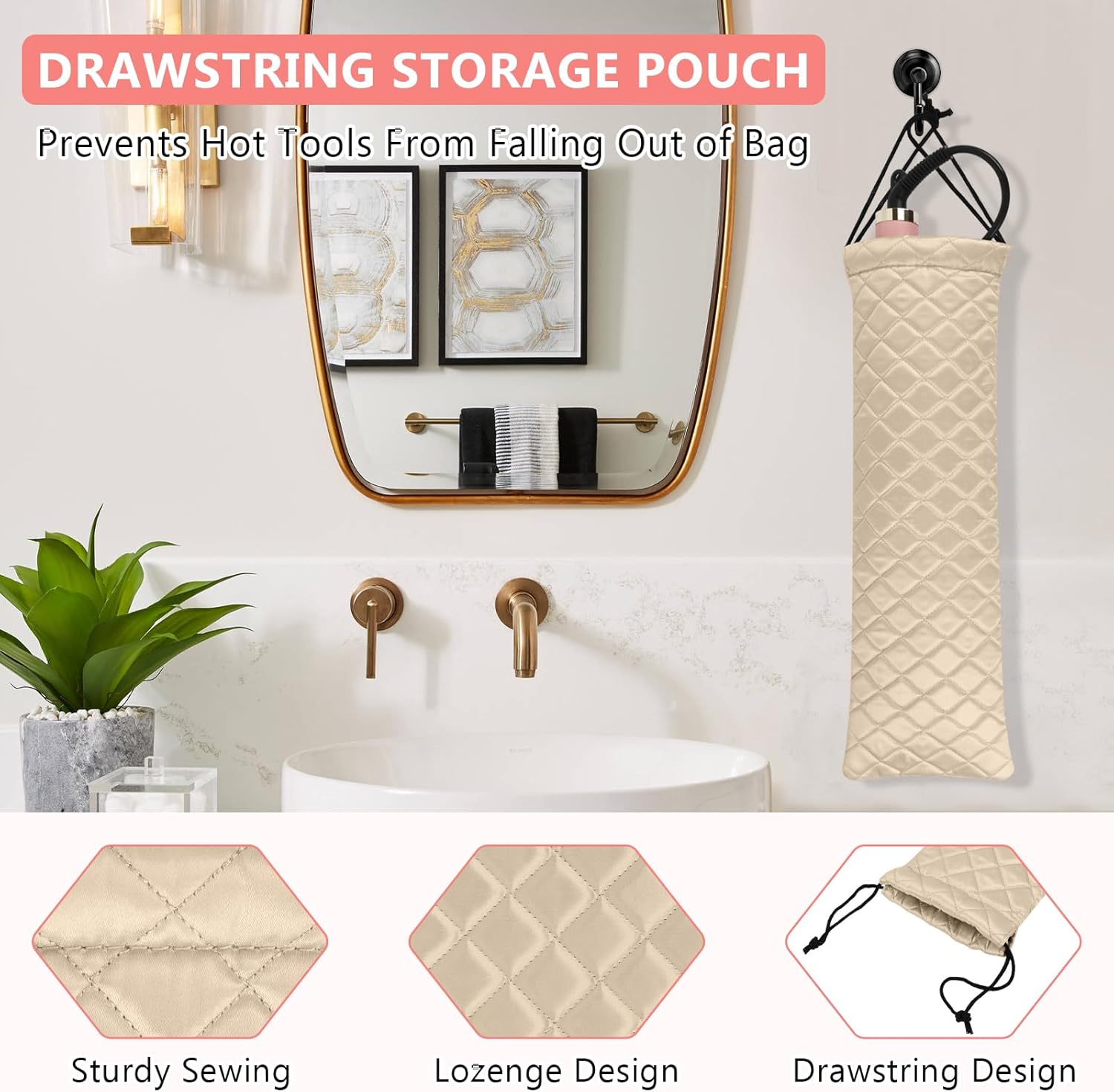 - Drawstring Closure Design: The intuitive drawstring closure design offers quick and effortless access to your hair tools while keeping them safely tucked away, ensuring your hair tools stay securely inside and preventing any accidental slips