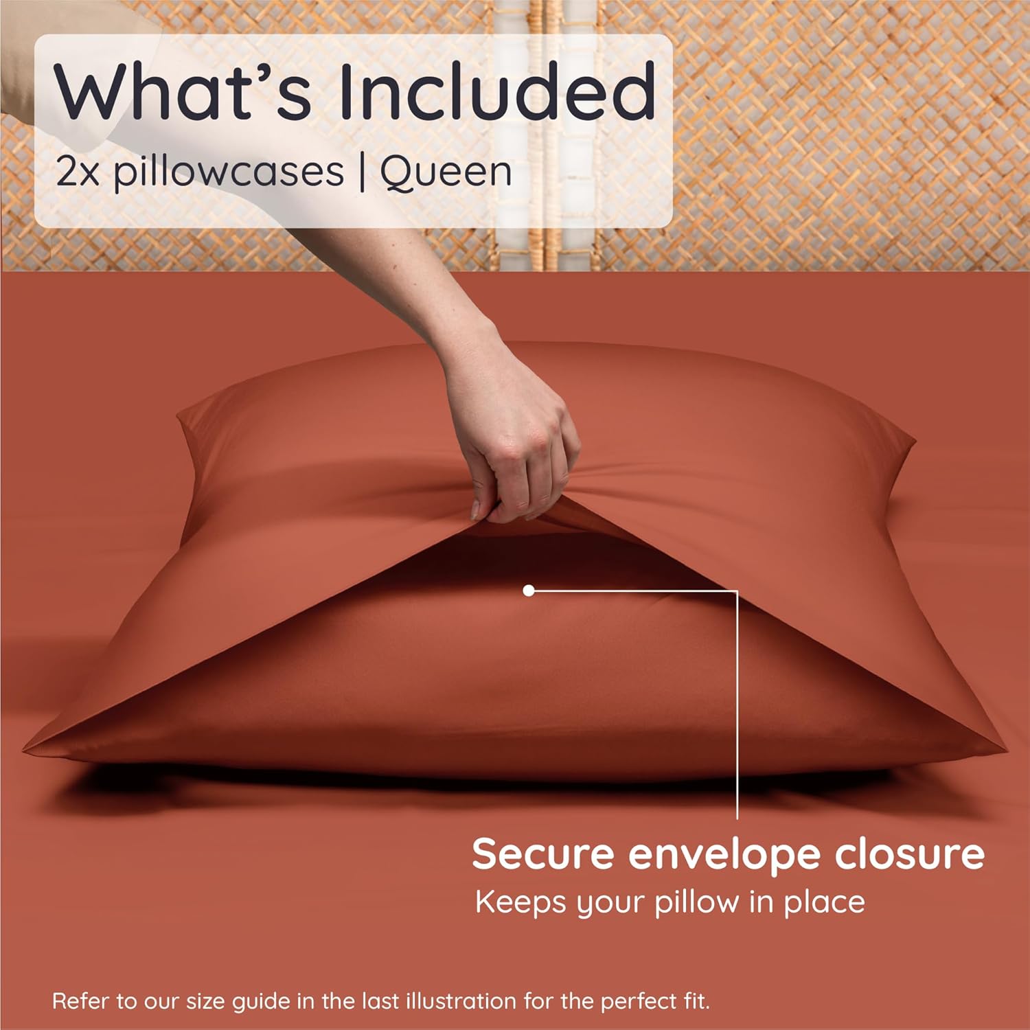 Bambaw 100% Viscose Derived from Bamboo Pillowcase Queen Size – Set of 2 Queen Cooling Pillow Cases for Hot Sleepers with Envelope Closure, Breathable & Super Soft Pillow Cases (Terracotta)