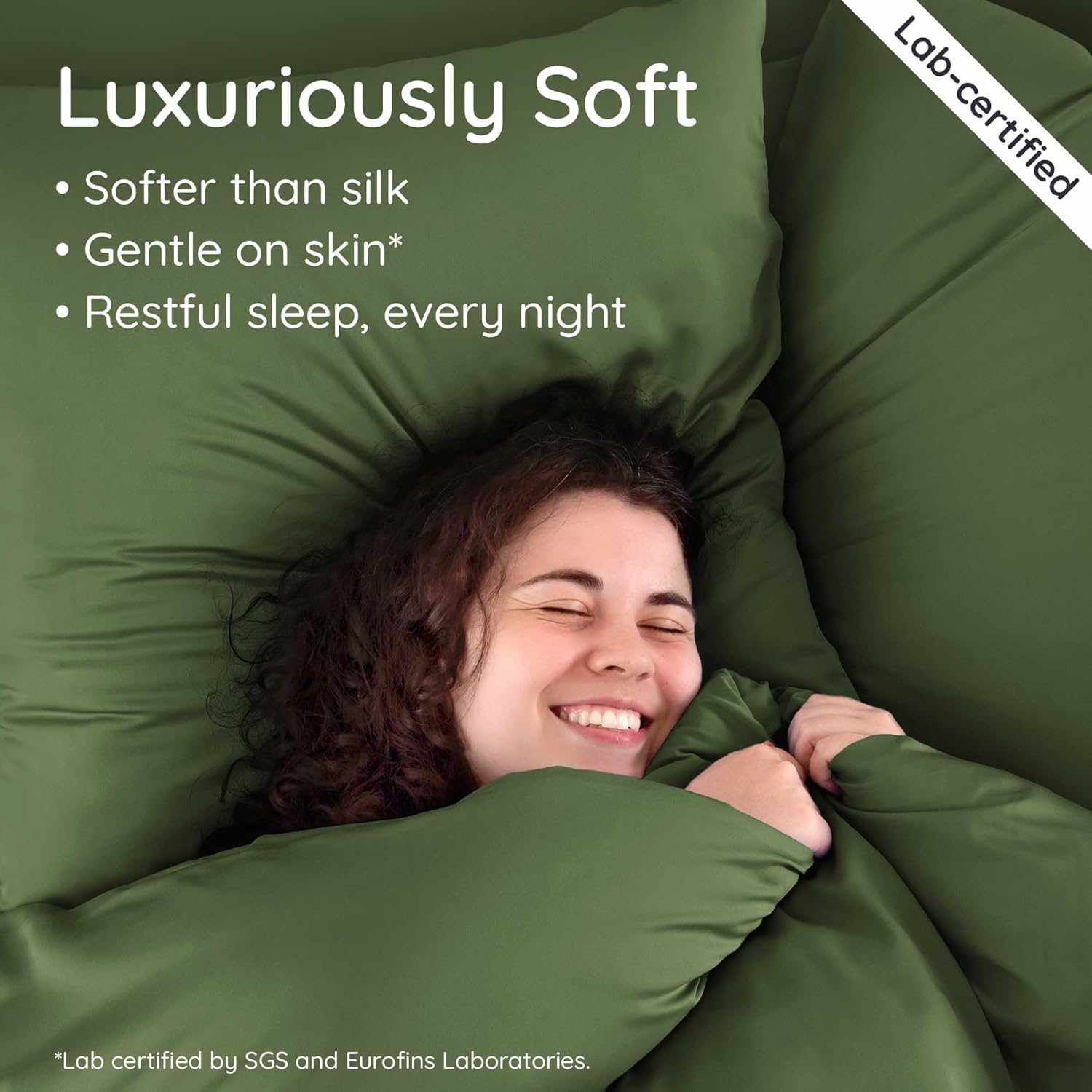 Bambaw 100% Viscose Derived from Bamboo Pillow Cases Queen Size Set of 2, Queen Cooling Pillow Cases with Envelope Closure, Breathable & Super Soft, Anti Acne Pillowcases (Olive)