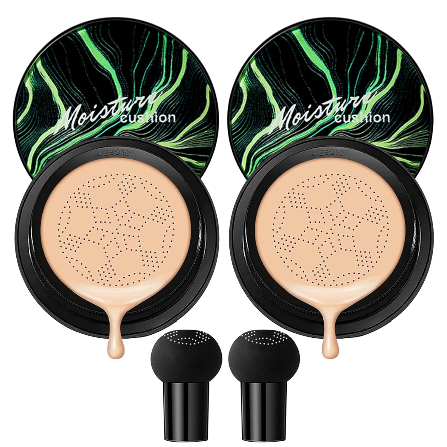 2Pcs Mushroom Head Air Cushion CC Cream, Long Lasting Oil Control BB Cream for All Skin Types, Moisturizing Foundation Face Makeup Set with Foundation Brush (#Natural)