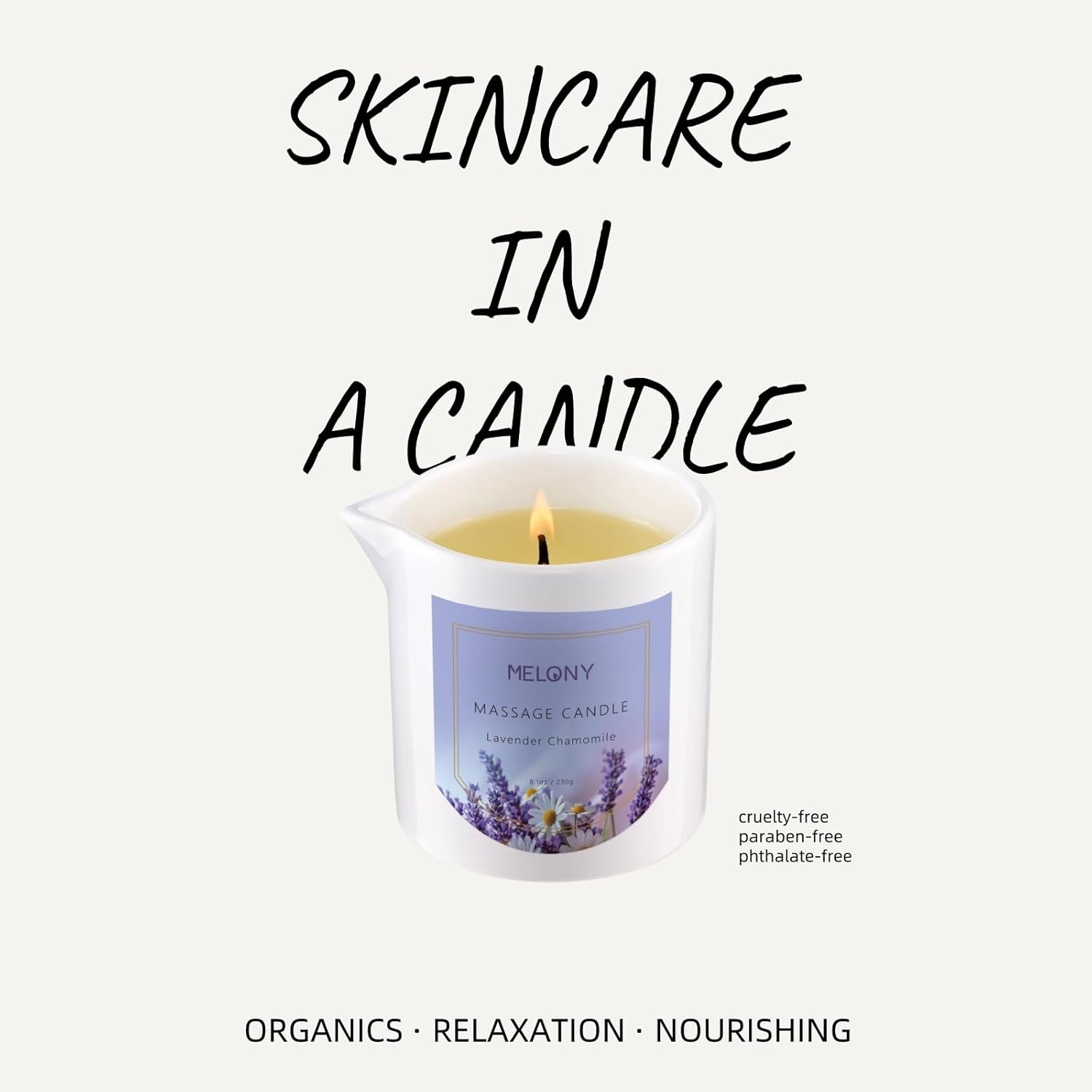 MELONY Luxury Massage Candle - Moisturising, Body Oil Candles for Muscle Relaxation, 8.1OZ (Lavender Chamomile)