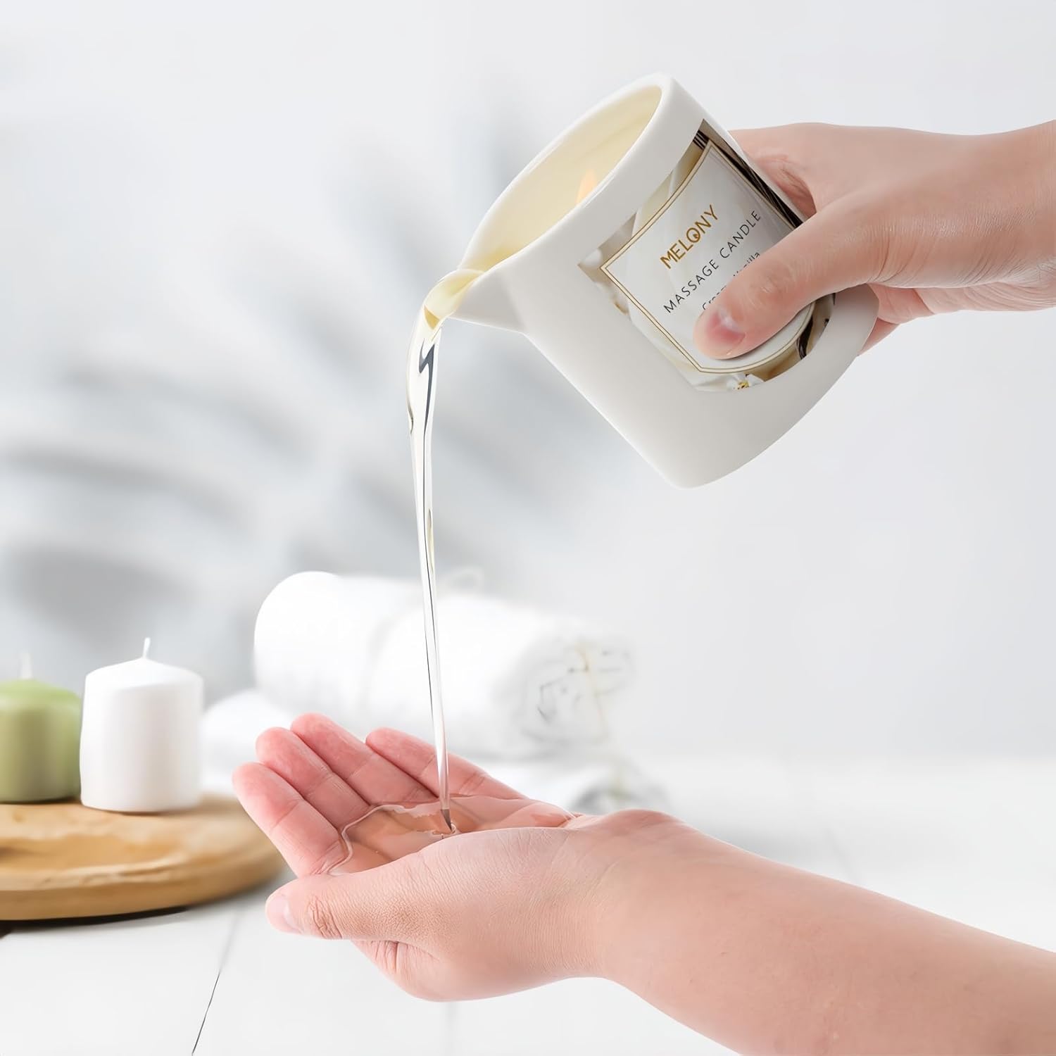 MELONY Luxury Massage Candle - Moisturising, Body Oil Candles for Muscle Relaxation, 8.1OZ (Creamy Vanilla)