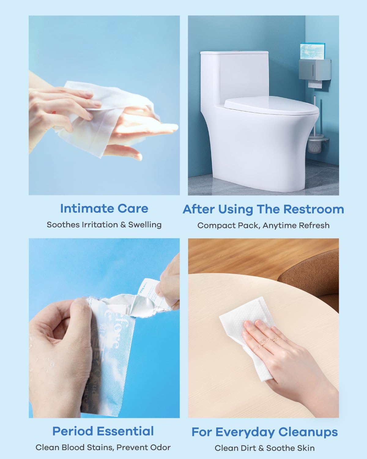 - Versatile and Flushable:Use it during your period, before/after intimacy, or as a refreshing cleansing wipe for hands, face, or surfaces. Made with thick, flushable, and water-dispersible non-woven fabric — strong enough for anything, gentle enough for everything.