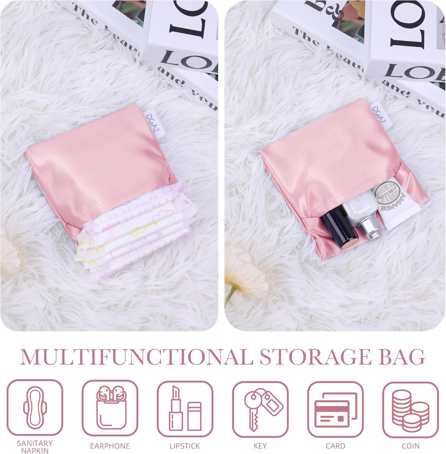 DGAZ Silk Sanitary Napkin Storage Bag, Period Bags for Teen Aged Girls, Portable for Panty Liners/Menstrual Cup/Small Tampons,Mini Makeup Bags for Purse(Bubblegum)