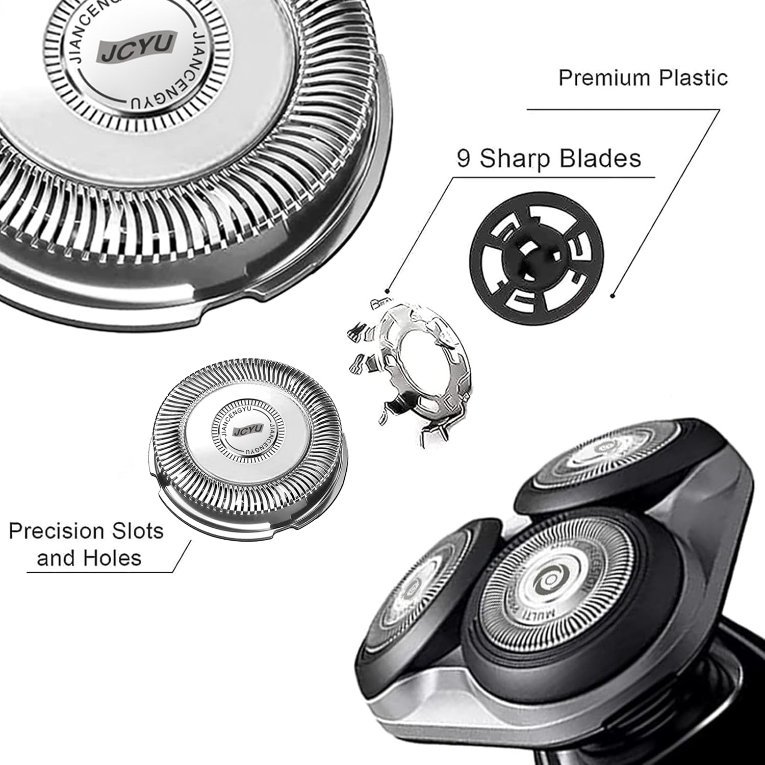 - [Easy Replacement & Installation]: Easy to take off and replace a new head- just two minutes. After installation, put a drop of oil on each nozzle and run for 10 seconds to get the best experience. It's recommended that you replace the shaving head every 12 months to get the max shave performance.