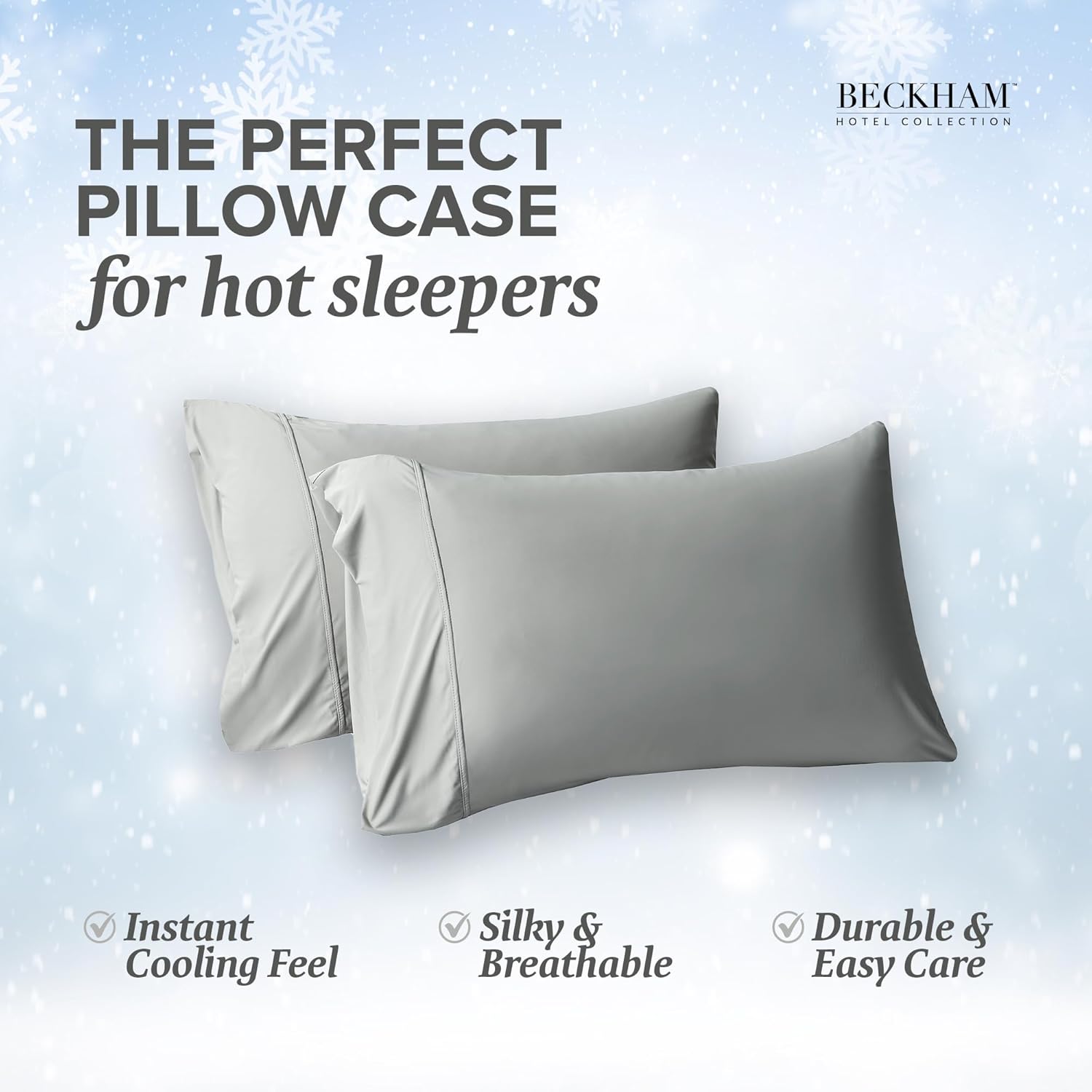 Beckham Hotel Collection Cooling Pillowcases for Hot Sleepers, King Size Set of 2, Cool Bedding, Envelop Closure, Silky Soft, Breathable, Moisture-Wicking, Dark Gray