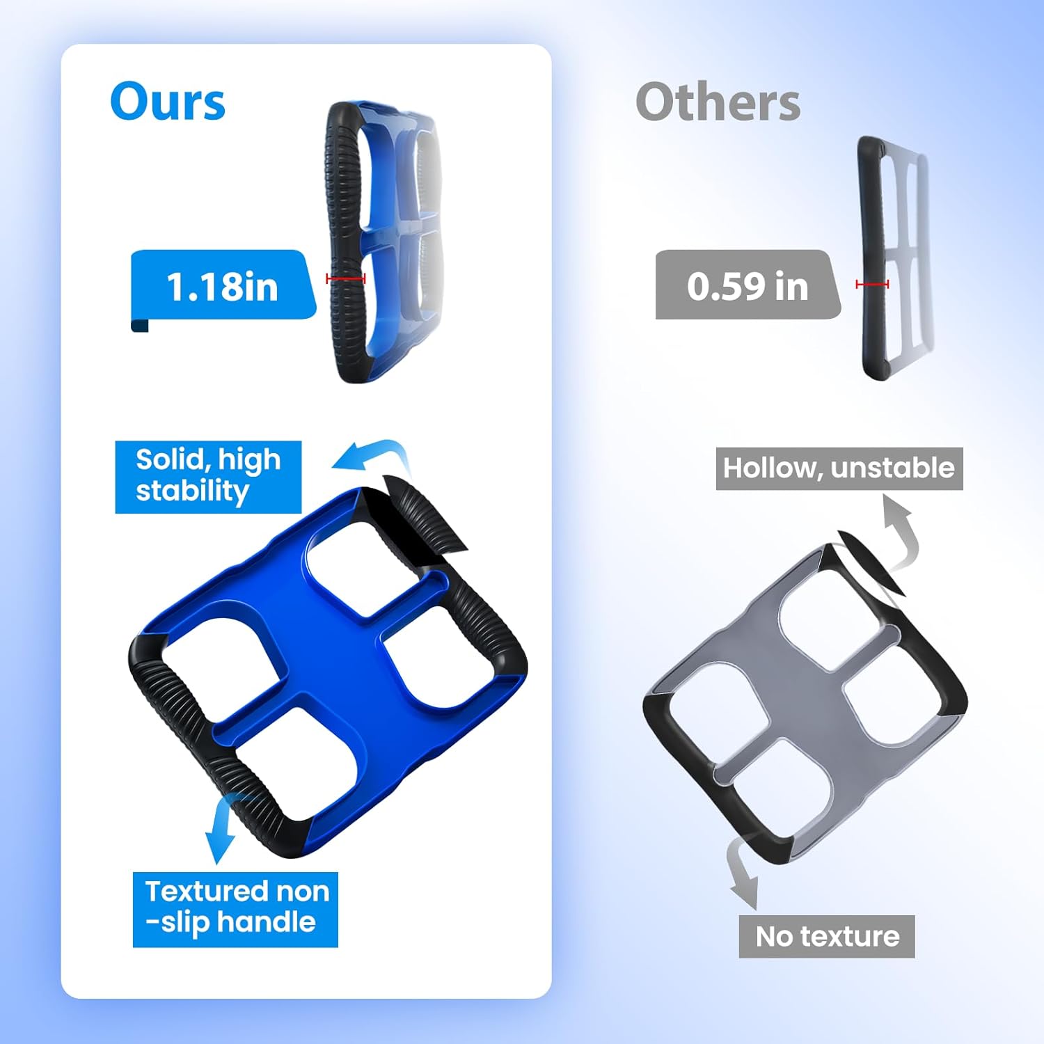 - ππ¨π§-ππ₯π’π© ππ«π’π©π¬: Standing aid supports rubberised grips with a clear texture that greatly enhances the friction between the palm and the grip, preventing harmful pulls on the shoulders, arms and wrists, helping to hold the hands in place and providing greater leverage. The mobility aid prevents hands from slipping and causing fall. The non-slip grip has a diameter of 4.1 inches, which can be comfortable to hold for any hand size.