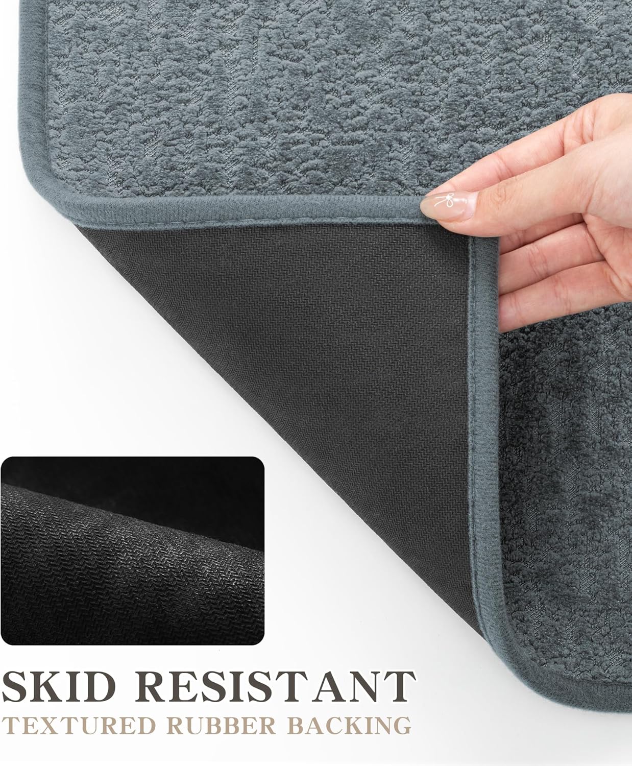 - 【Durable】Say goodbye to fraying edges and pulled threads, each edge of the bath rugs for bathroom is bordered with a durable cloth and the trim is sewn well, don't worry the braid chenille will come undone with abrasion or pulling. It does not collapse, deform, shed hair or fade. Used and cleaned many times, this soft bathroom rugs is still as new mat