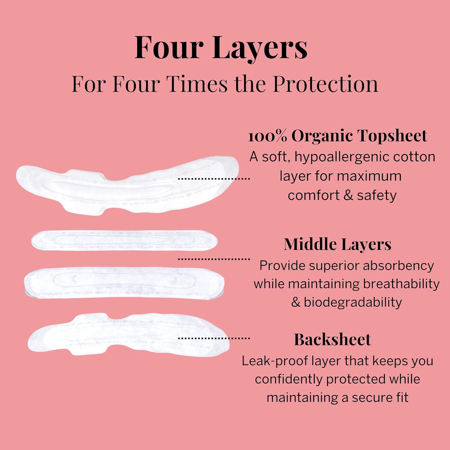 - IRRITATION-FREE. Our pads are hypoallergenic and moisture-wicking, locking away fluid and odors to leave your intimate skin happy and healthy.