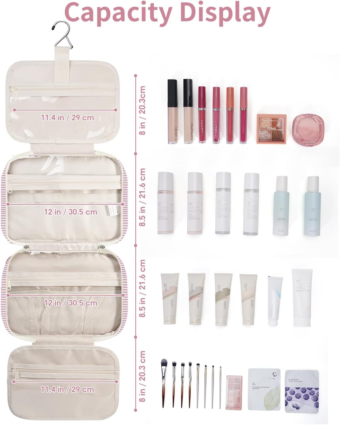 - NOT BULKY DESIGN - Large Capacity yet compact design, weighing 16 ounces. large metal hook allows hanging the toiletry case from towel rack, coat hook or wherever is available, making your toiletries and cosmetics displayed well for easy access