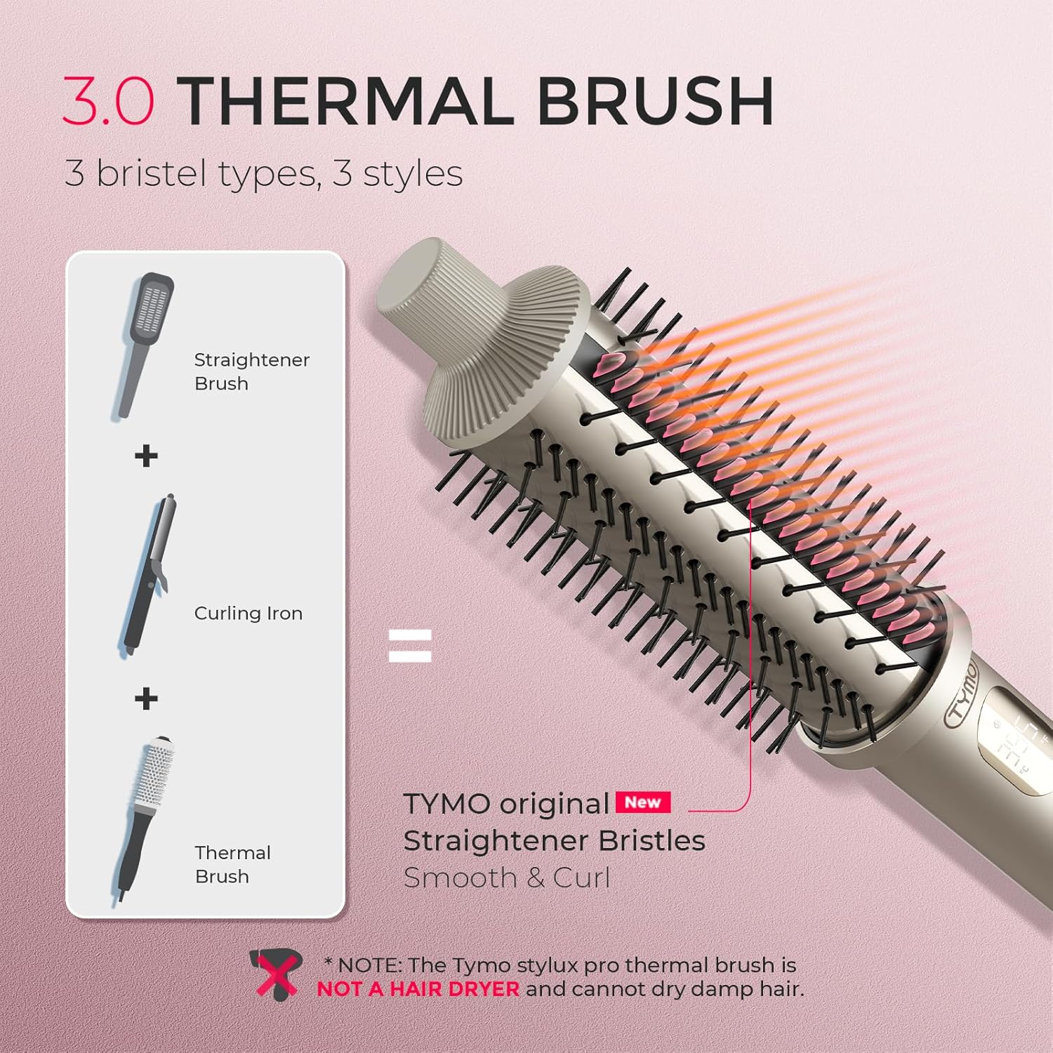 - EFFORTLESS BLOWOUT AT HOME, HAIR STRAIGHTENER AND CURLER 2 IN 1 - TYMO 3.0 Stylux Pro thermal round brush integrates a straightening brush, curling iron, and thermal brush as one tool. Straighten, curl, volumize & detangle in one step – cutting styling time in half. 【The tymo stylux pro thermal brush is a thermal styling tool only. It is NOT A HAIR DRYER and cannot dry damp hair. Before using this product, please ensure that your hair is clean and dry】