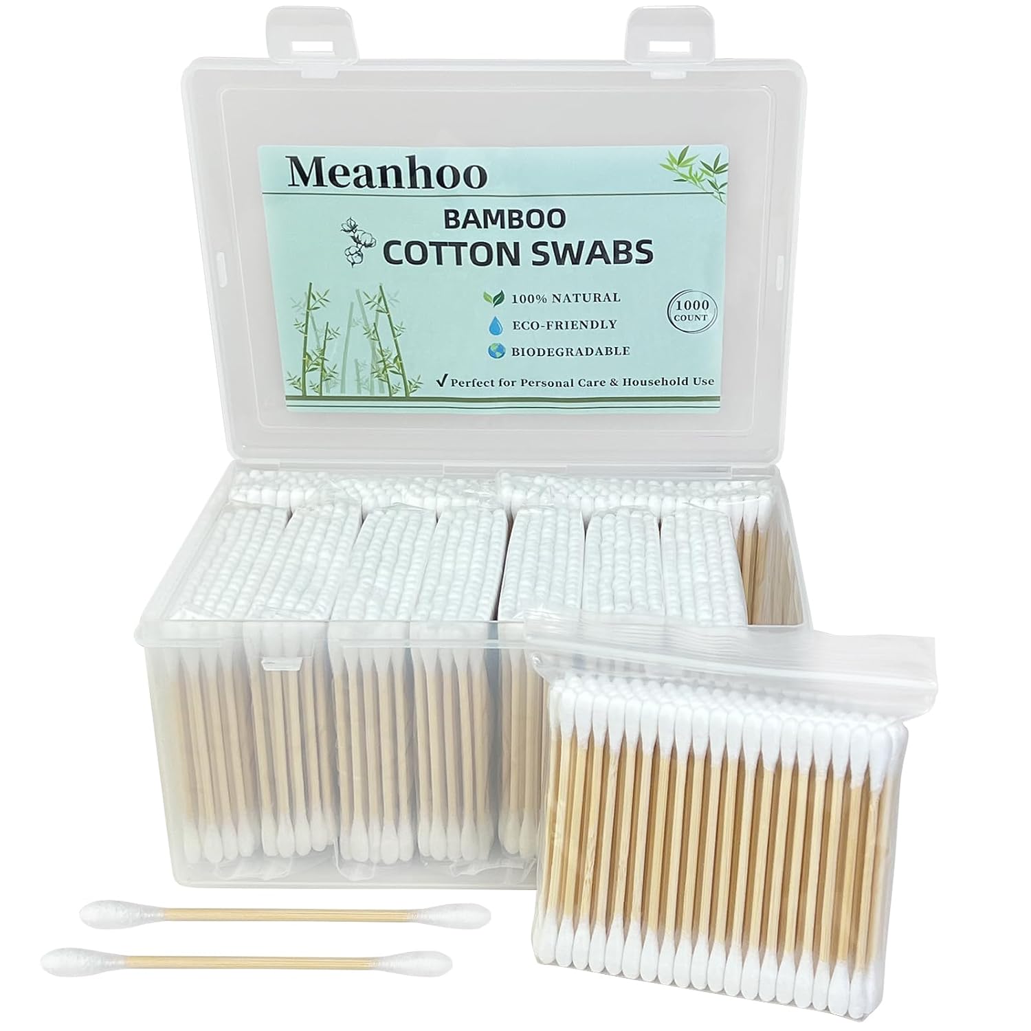 - 1000 Count in Storage Box: Stay organized with 1000 bamboo cotton swabs neatly packed in a storage box, always ready for daily use—perfect for the whole family.