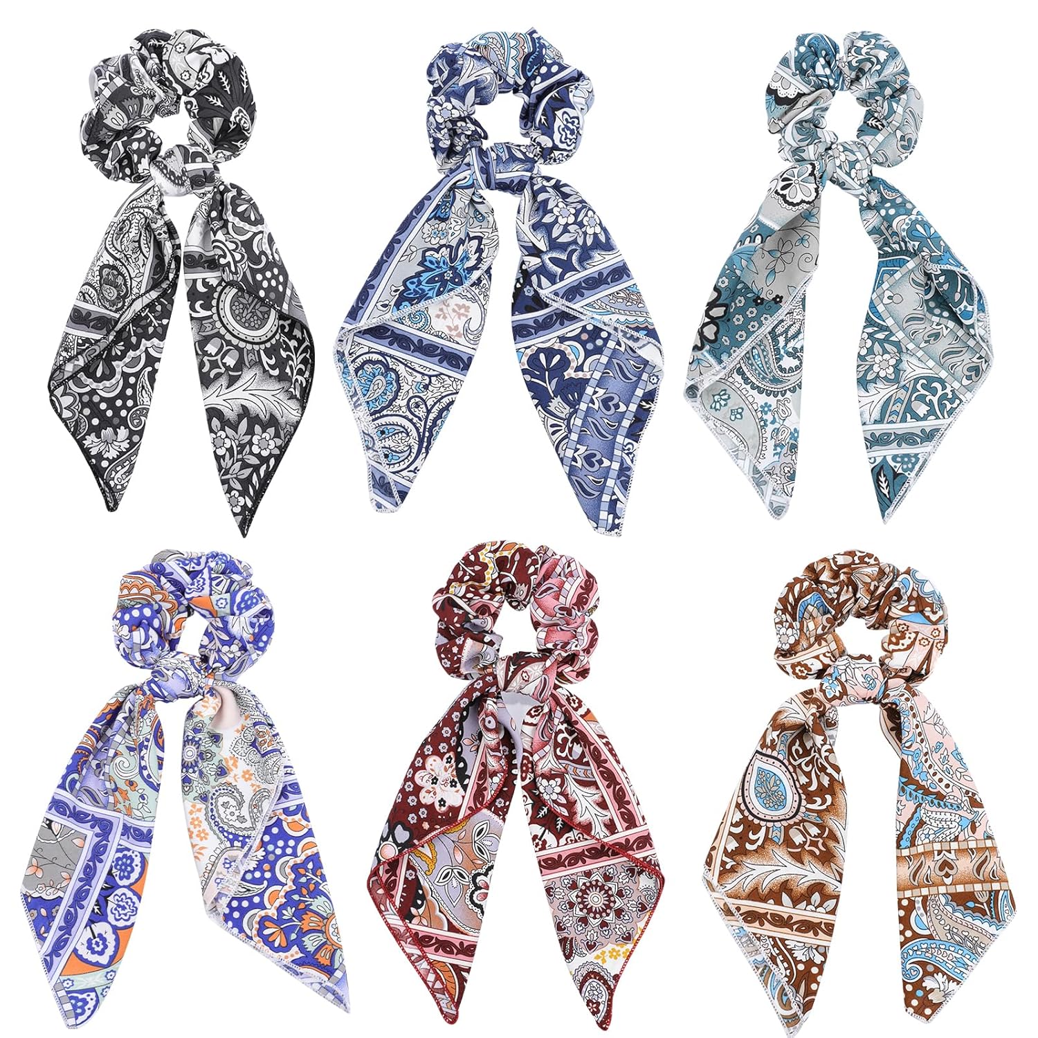 - 6 colors:6pcs paisley pattern scarf-scrunchies with different colors will provide you different accessories for dress-up and mood.
