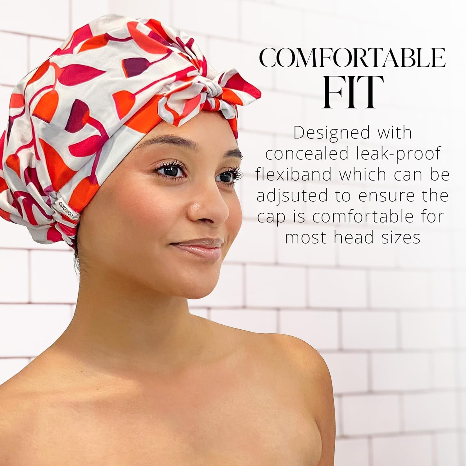 GRACE & COMPANY Luxury Shower Cap For Women - 100% Waterproof, Reusable, Washable & Breathable Shower Caps - Cara Cara