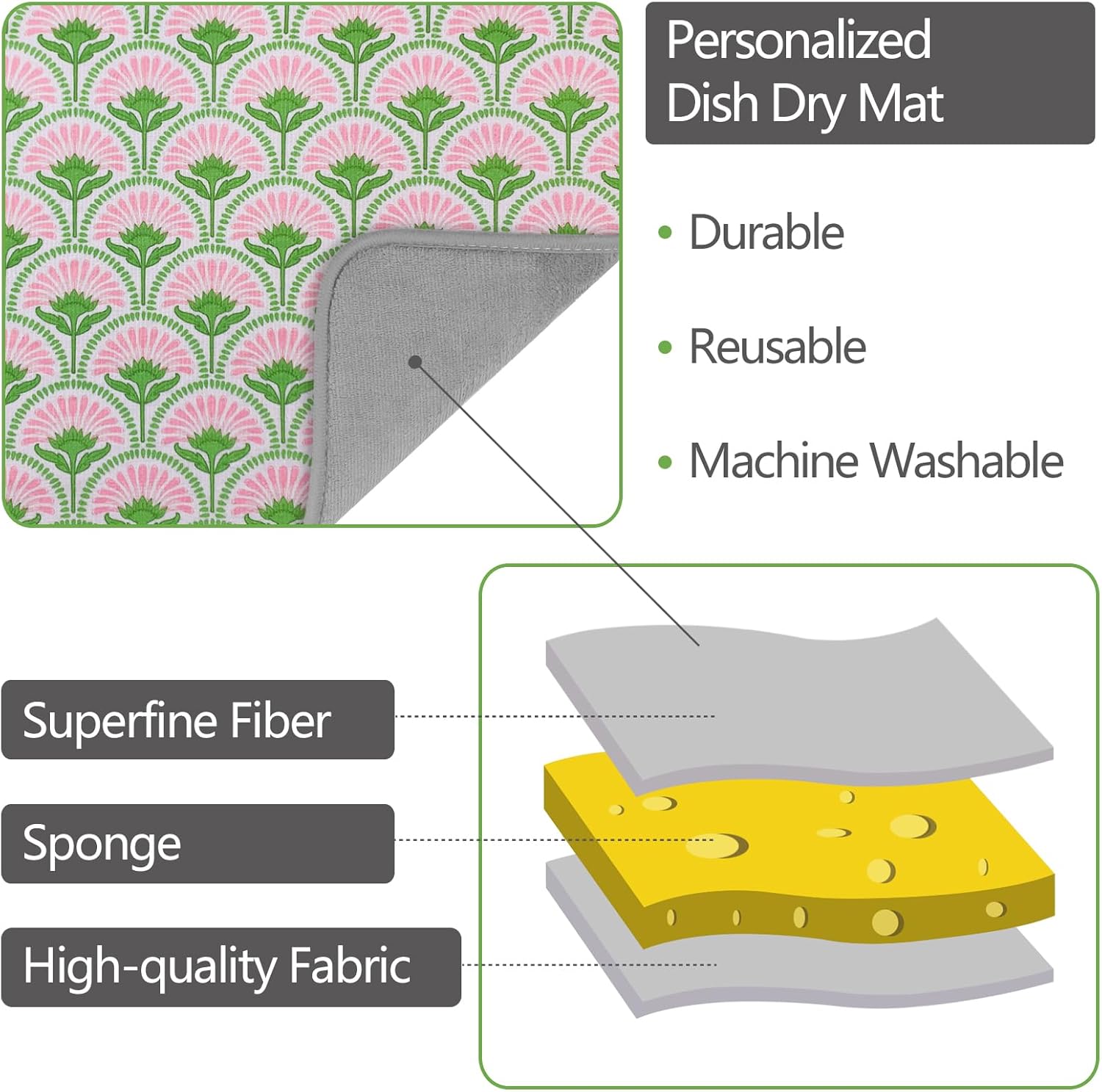 - 🌈 CREATIVITY AND STRONG ABSORPTION: can't stand wet dishes and dry mats? Buy one of our dish mat drying kitchen mat. microfiber dish drying mat, the surface can quickly absorb water 2-4 times its own weight. Help your crockery and tableware dry faster and more hygienically, and keep the table completely dry