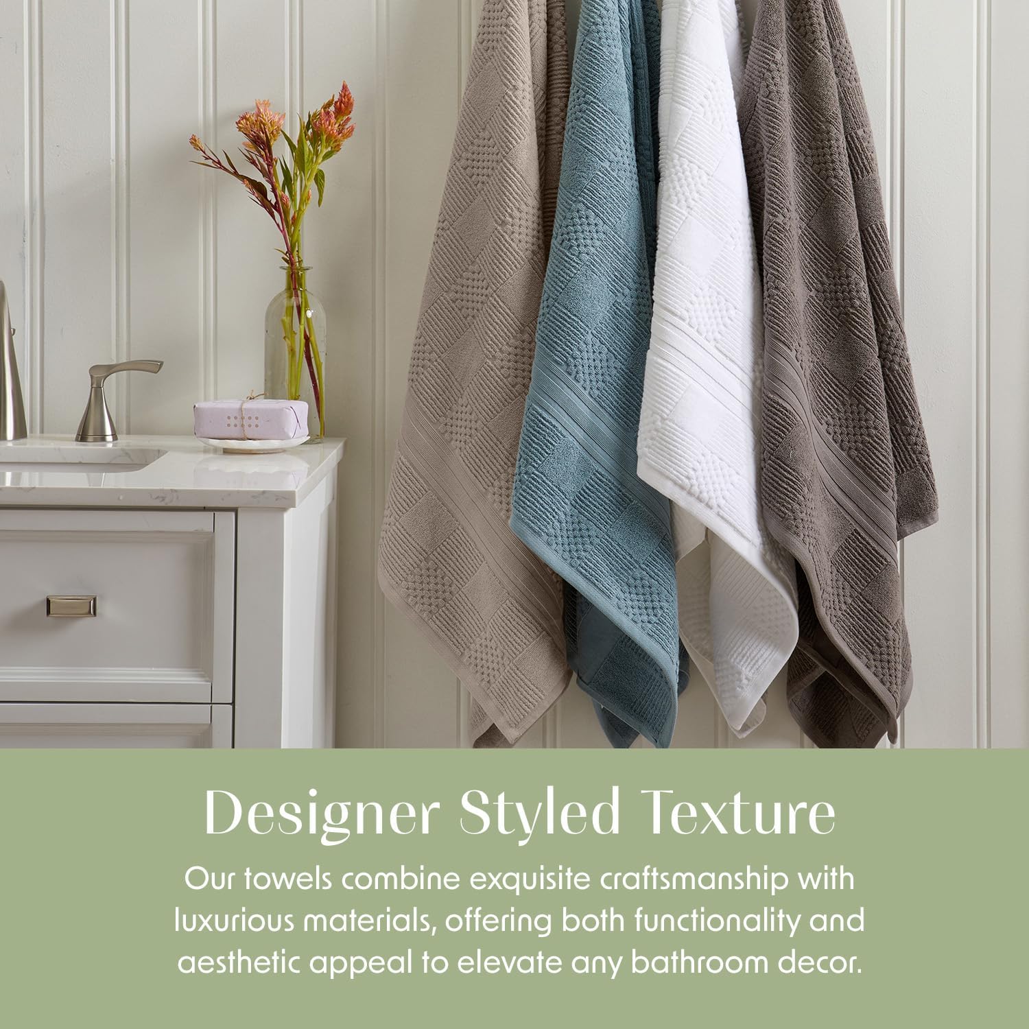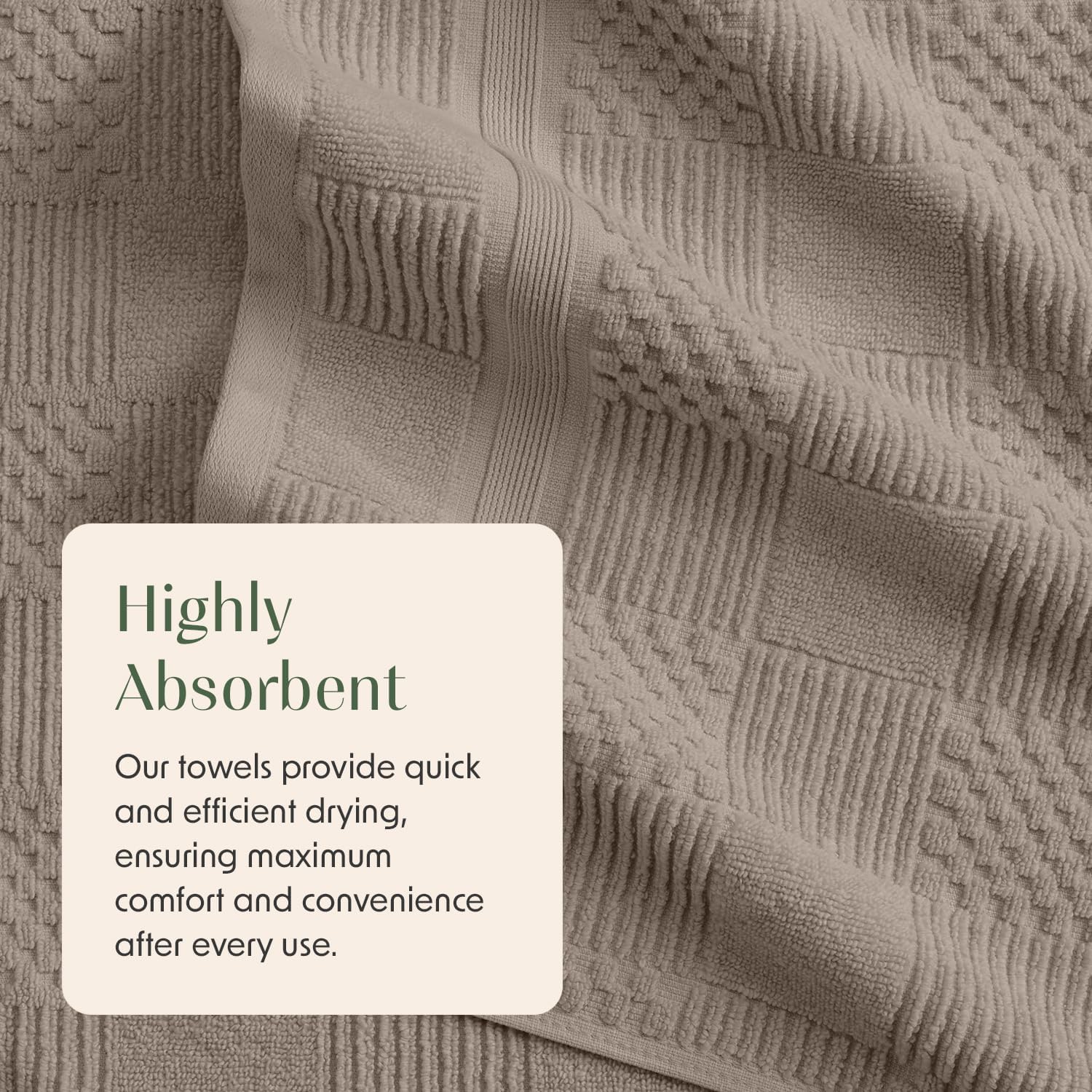 Springtree Home 100% Cotton Bath Towel Set of 4 | Brown Bath Towels | Geometric Textured Design | Absorbent & Quick-Dry | 4 Bath Towels | Oeko-TEX® Standard 100 Cotton | Myla Collection - Cobblestone