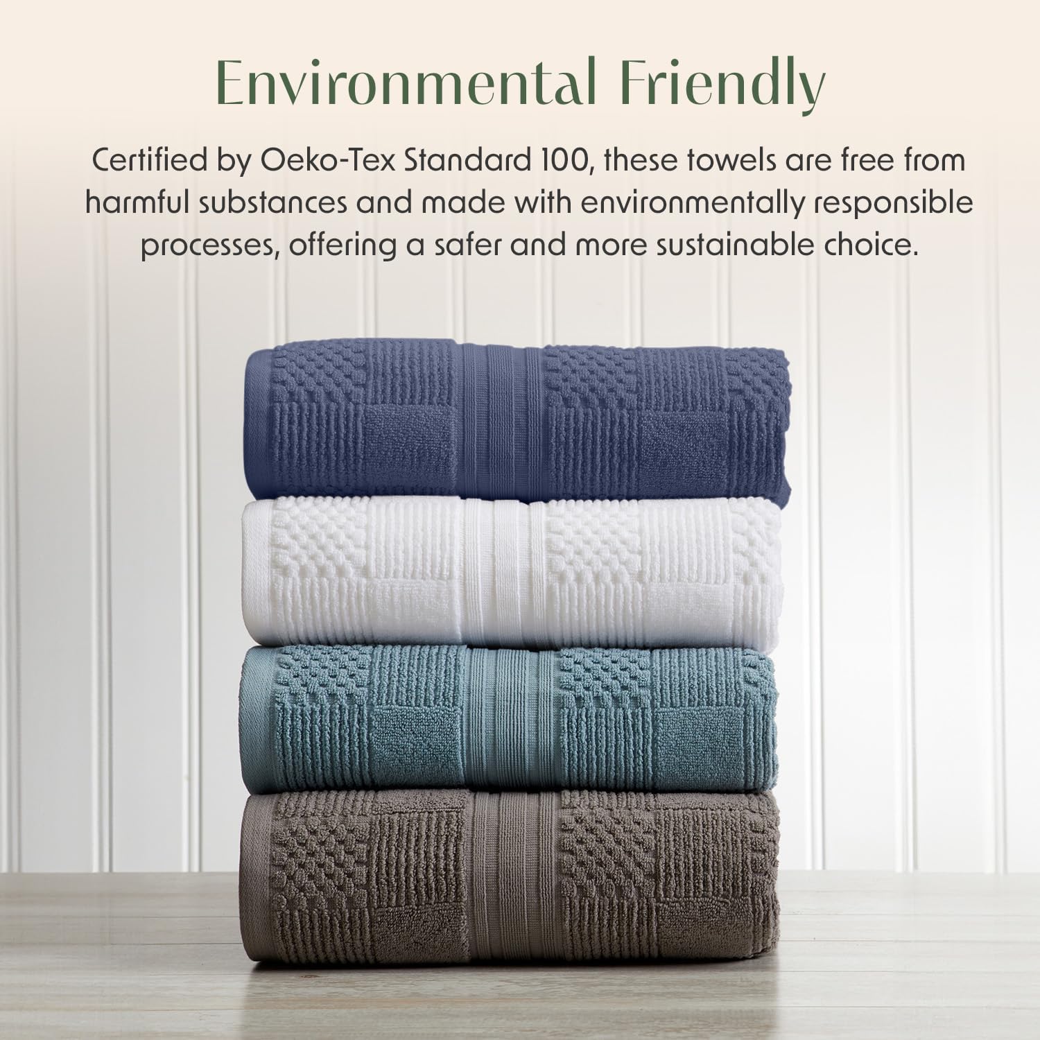 Springtree Home 100% Cotton Bath Towel Set of 4 | Blue Towels | Geometric Textured Design | Absorbent & Quick-Dry | 4 Bath Towels | Oeko-TEX® Standard 100 Cotton | Myla Collection - Indigo