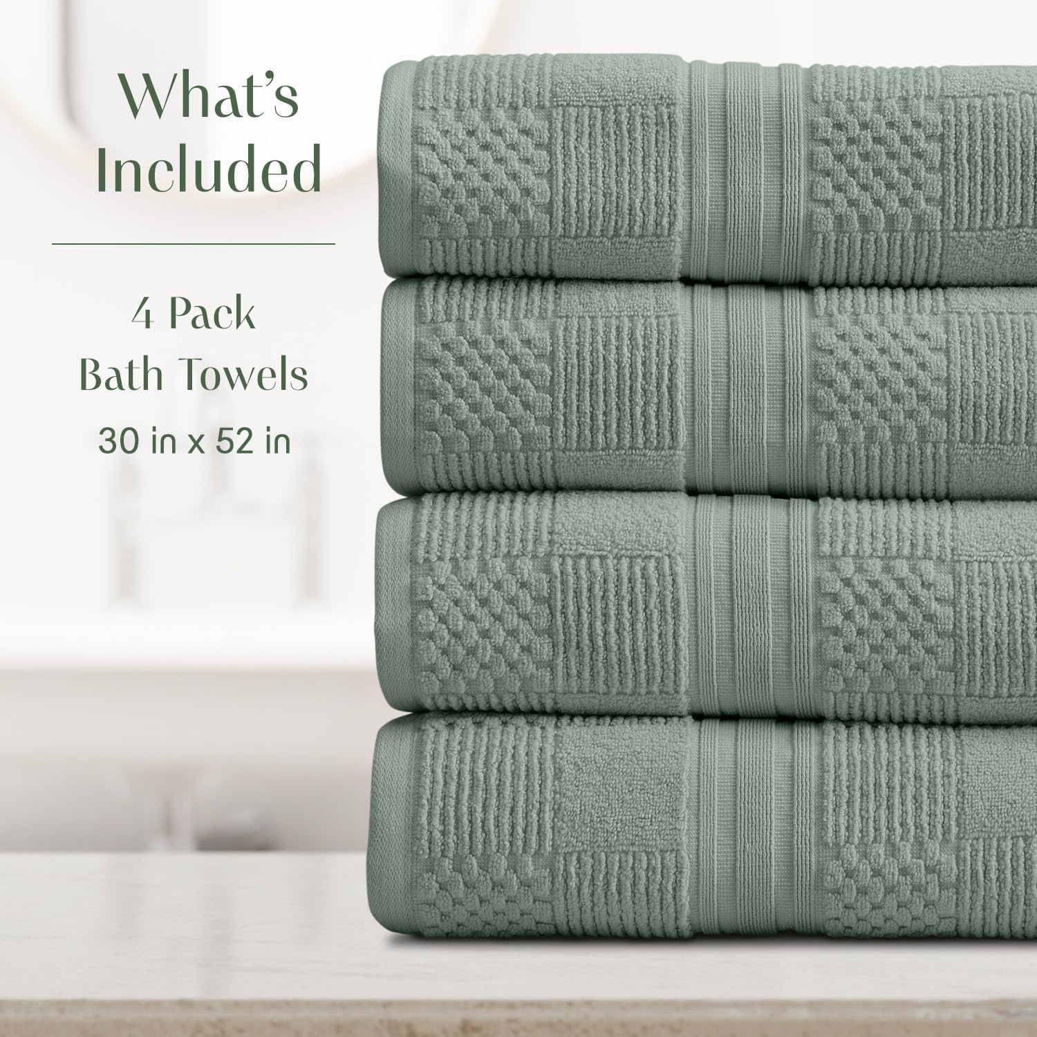 - SET INCLUDES : 4 Bath Towels - 30" x 52"