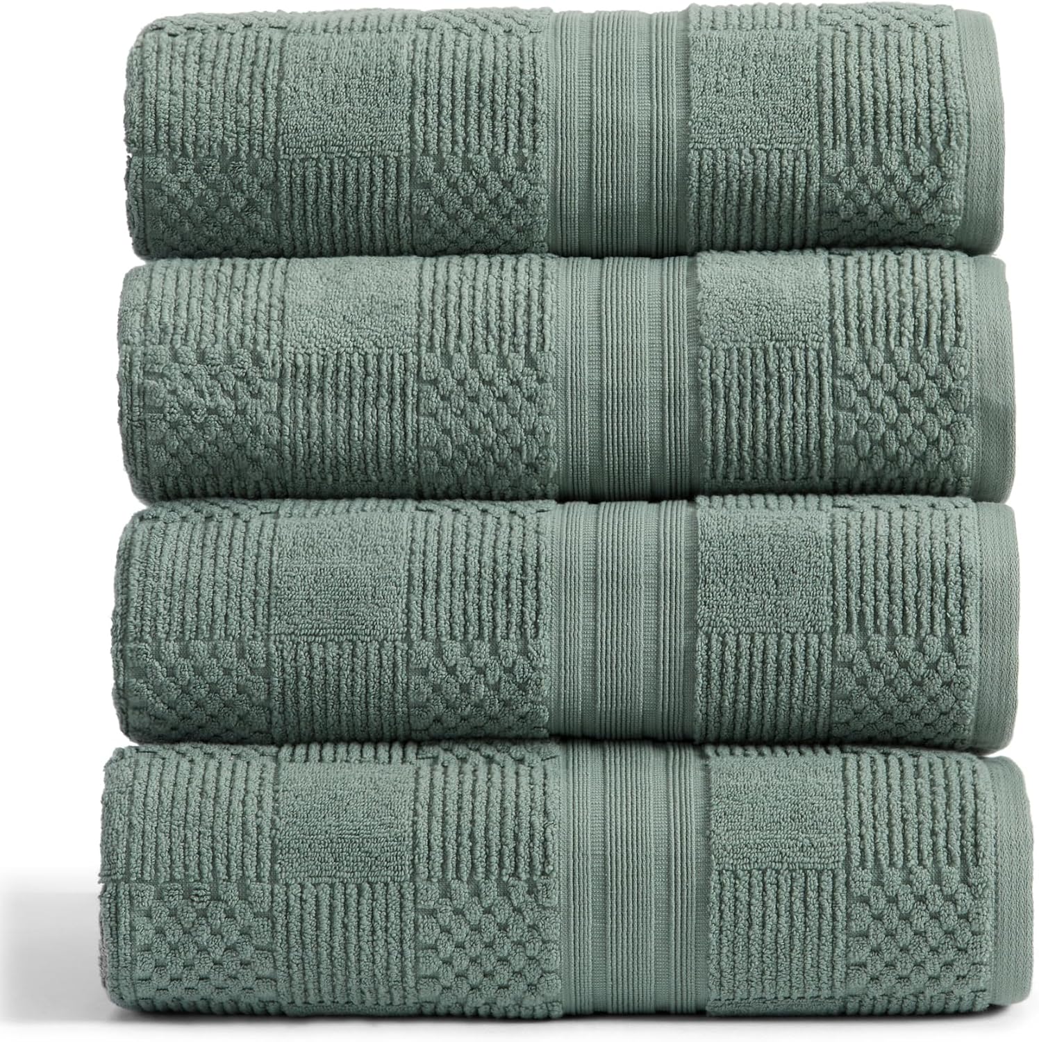 Springtree Home 100% Cotton Bath Towel Set of 4 | Green Bath Towels | Geometric Textured Design | Absorbent & Quick-Dry | 4 Bath Towels | Oeko-TEX® Standard 100 Cotton | Myla Collection - Lily Pad