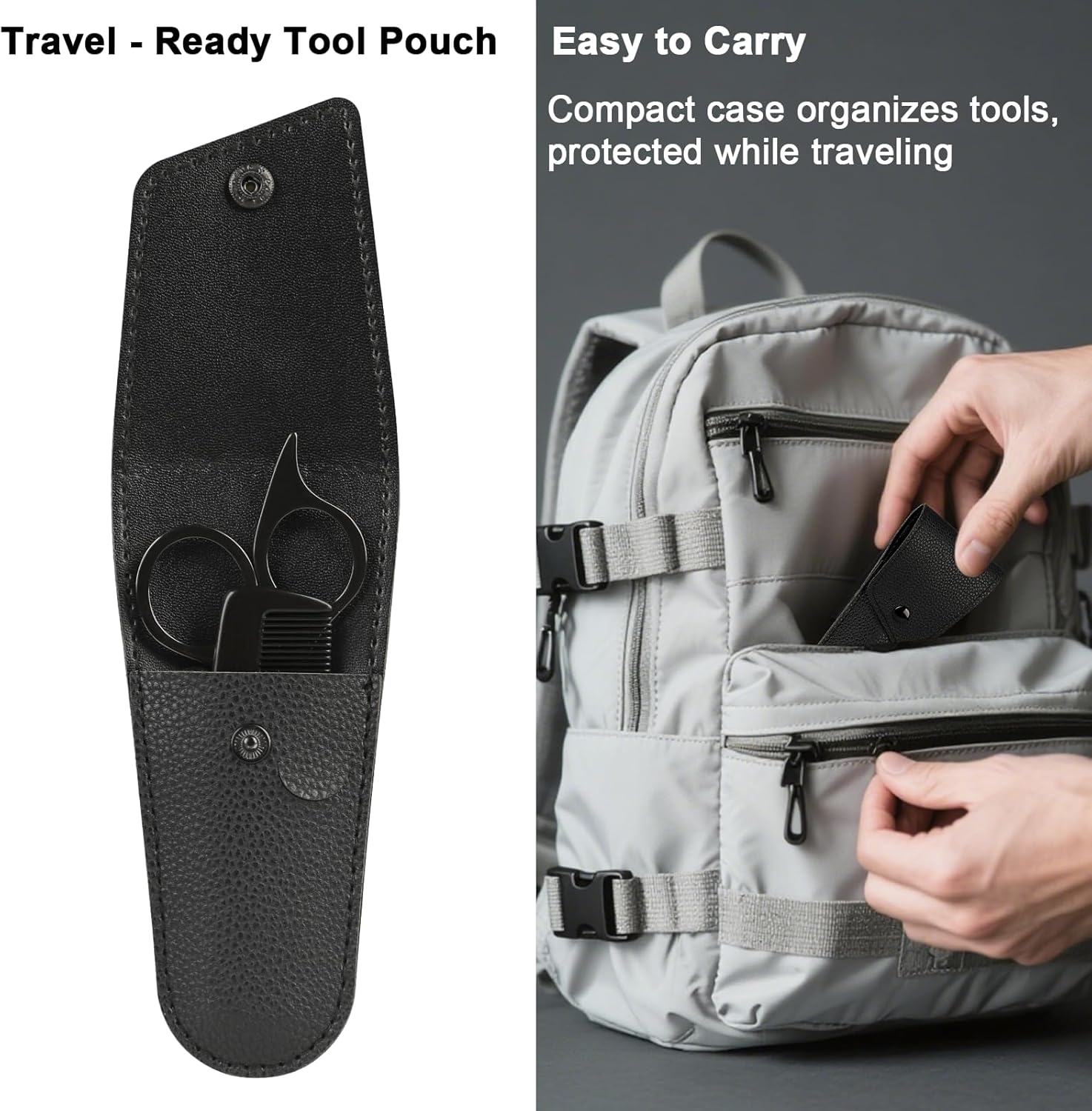 - COMPLETE KIT: Includes a 5-inch grooming scissors, dedicated mustache comb, beard comb, and a protective carrying pouch for easy storage and travel