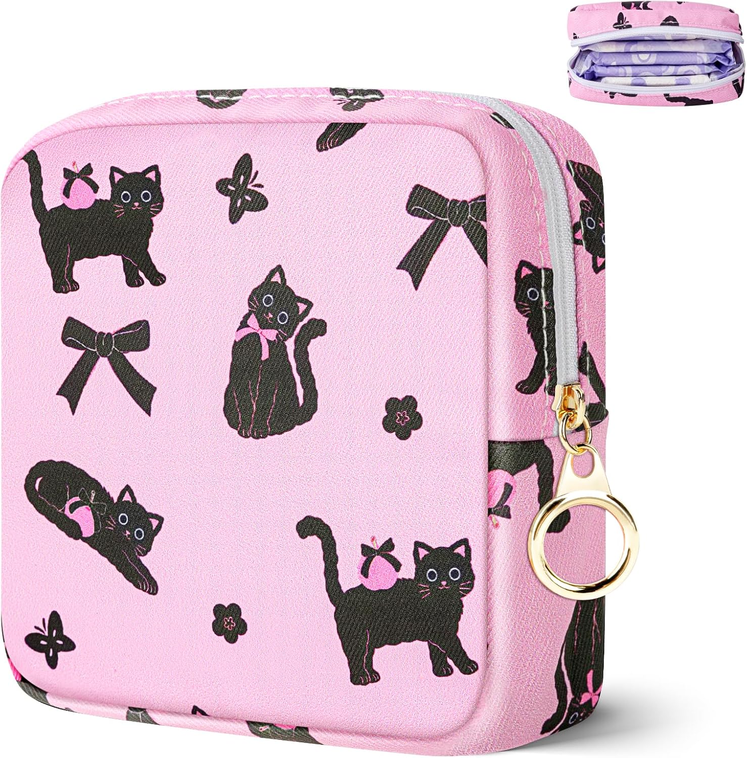 Tampon Holder for Purse, Canvas Period Bag Sanitary Napkin Storage Bag for Girls Womens, Portable Feminine Emergency Pad Period Pouch(Bow-Tie Black Cat)