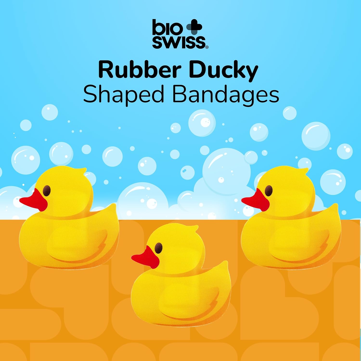 BioSwiss Kids Bandages, Rubber Ducky Shaped Self Adhesive Bandage, Latex Free, Sterile Wound Care, 50 Count