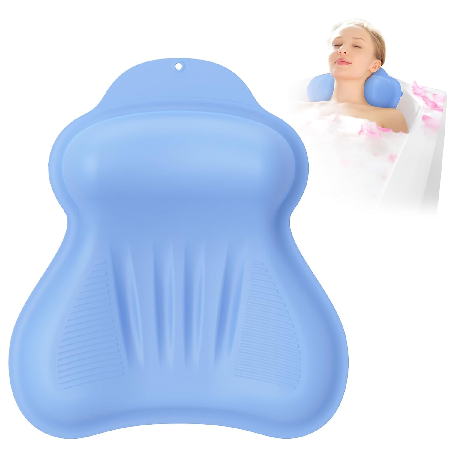 Silicone Bath Pillow, New Material Bath Pillows for Tub Head Neck and Back Support, Bath Tub Pillow with 4D Press Inflatable Airbag and Non-Slip Strong Suction Cups, Quick-Drying, Easy to Store, Blue