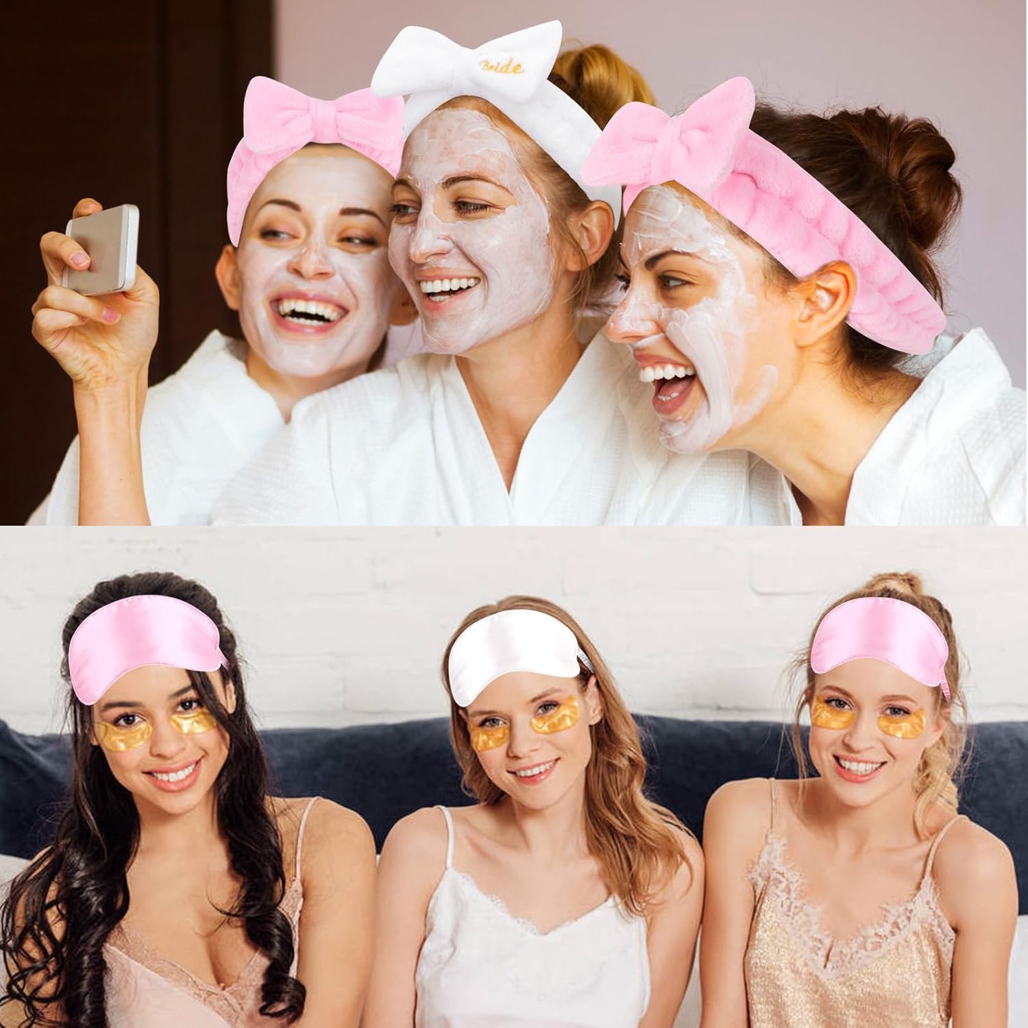 - Soft Spa-Quality Material: Crafted with ultra-soft, skin-friendly fabric—ideal as spa headbands for women or makeup headbands, and eye masks designed for complete light blockage. Gentle on hair and skin, and comfy for all-night bachelorette fun or lazy bridal pampering.