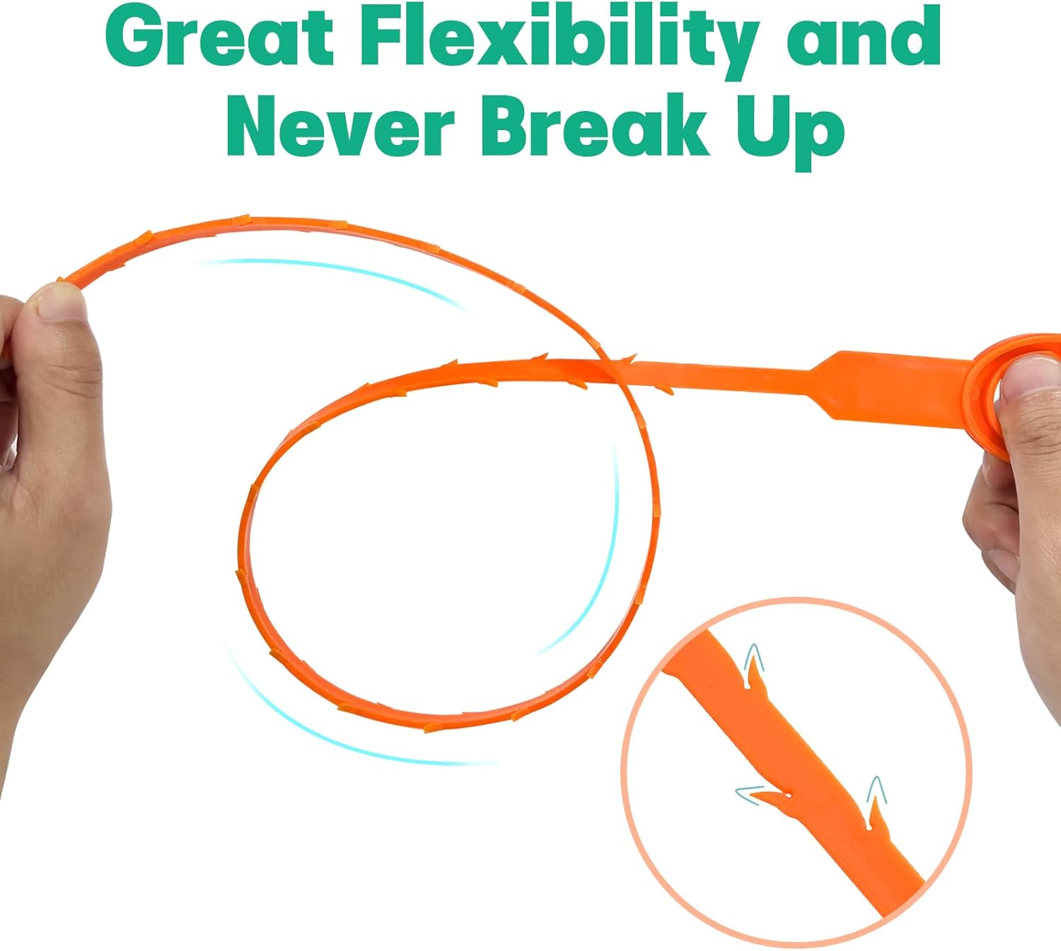 - Soft & Flexible Barbed Wand:Plastic drain clog remover is designed with Multi-tooth and the polypropylene is soft enough to bend in many kinds of strainers and pipes, the flexible barbed wand could easily hook the hair and debris