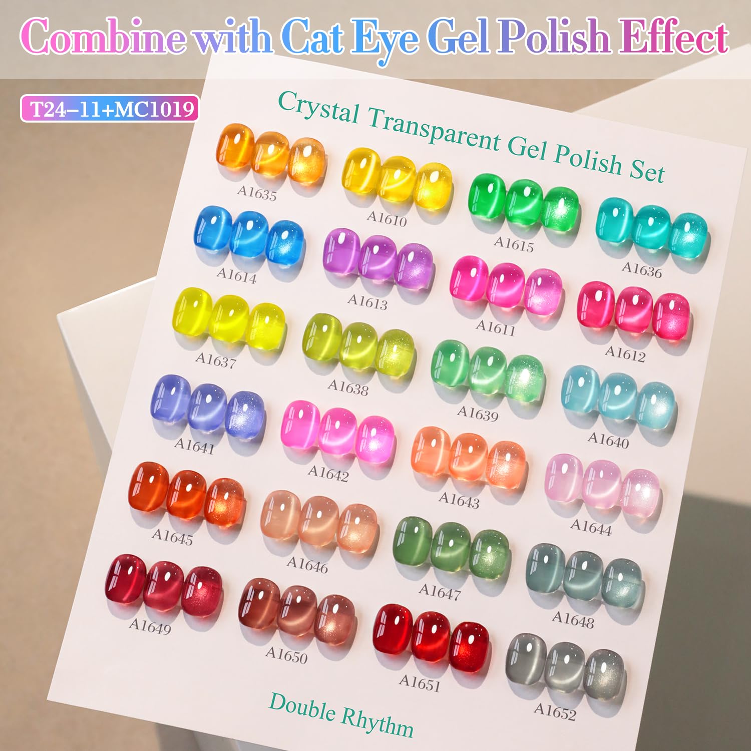 Double Rhythm 28Pcs 0.5Oz Gel Nail Polish Set Same Color Same Bottle Soak Off Gel Polish Kit Nail Art Manicure Salon DIY at Home for Women (Neon Jelly Sheer Collection-T24-11)