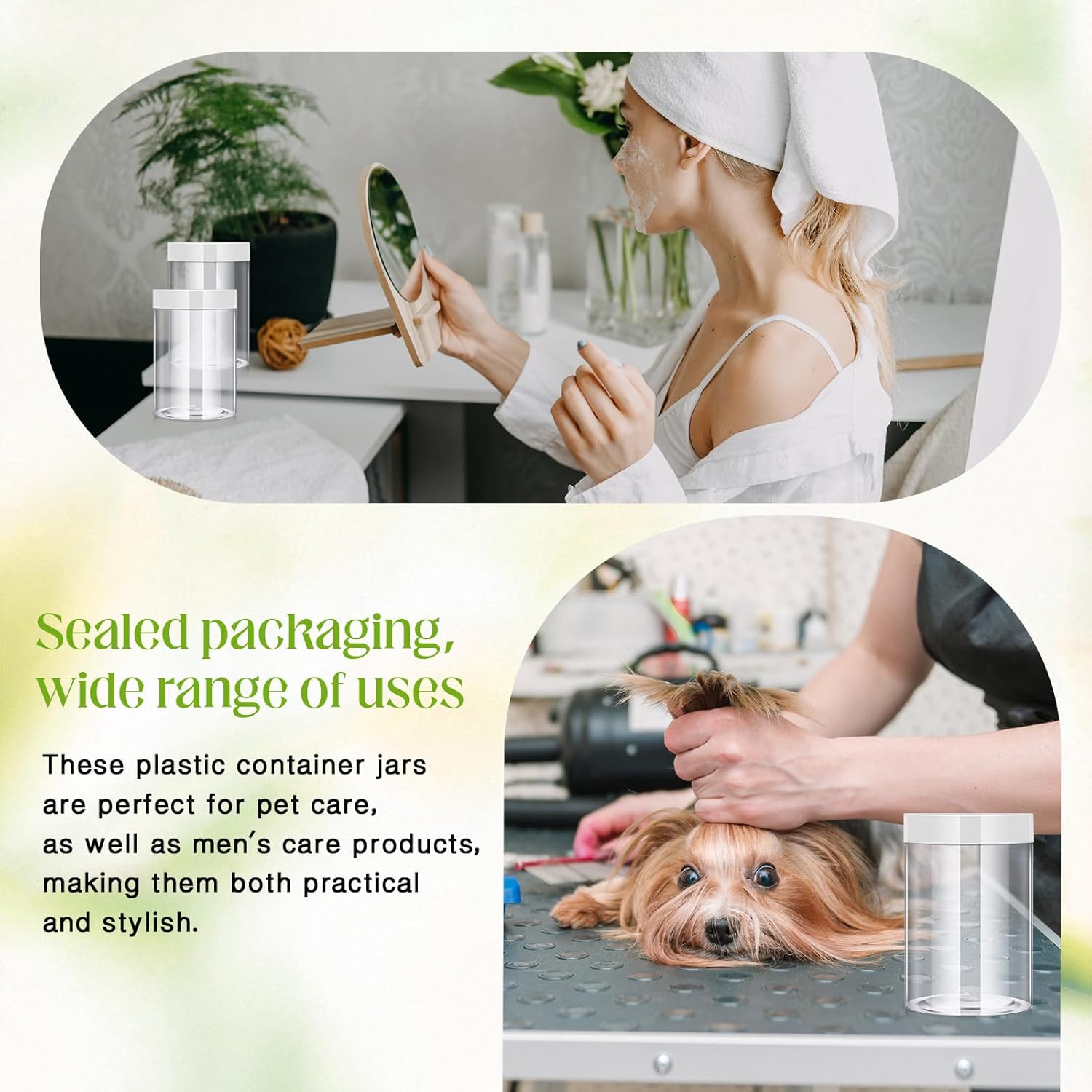 Patelai 4 Pieces Round Wide-mouth Leak Proof Plastic Container Jars with Lids for Travel Storage Makeup Beauty Products Face Creams Oils Salves Ointments DIY Making(27 Ounce,Clear)