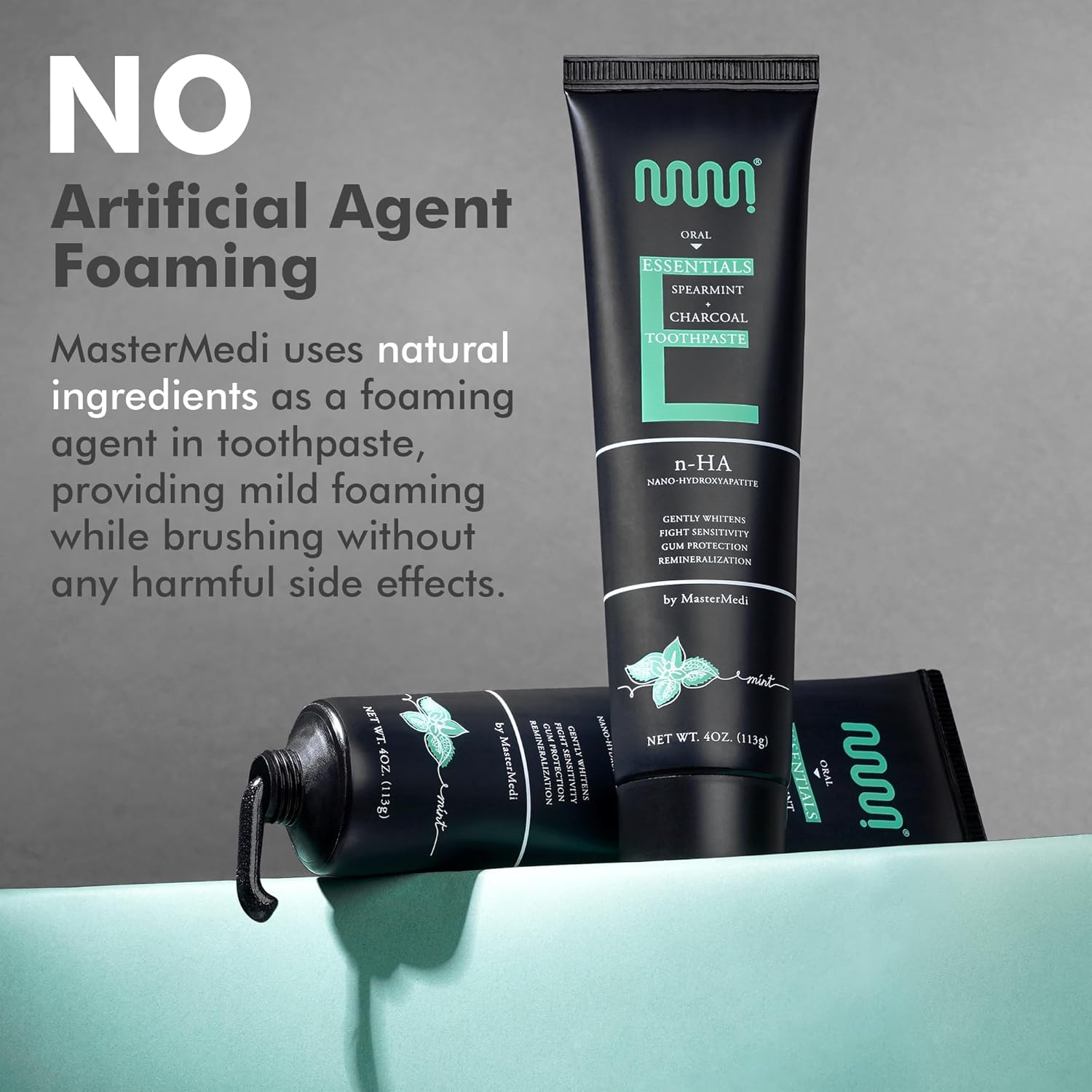 MasterMedi Nano Hydroxyapatite Toothpaste (Inspired by 10% nHA Formulas), Fluoride-Free, Charcoal Whitening, Sensitive Teeth Care, Enamel Support, SLS-Free, Xylitol, Citrus Mint, 4 Oz (Pack of 2)