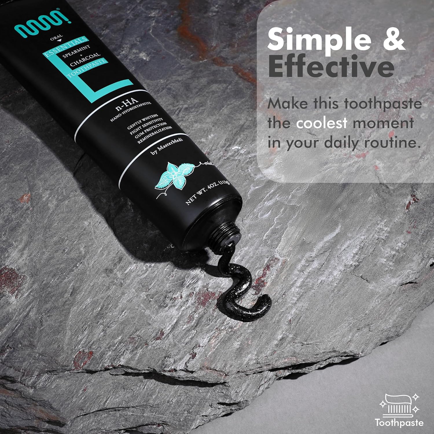 - DETOXIFYING CHARCOAL + NANO HYDROXYAPATITE Infused with gentle activated charcoal and enamel-supporting Nano Hydroxyapatite to help lift surface stains and promote cleaner, healthier teeth.