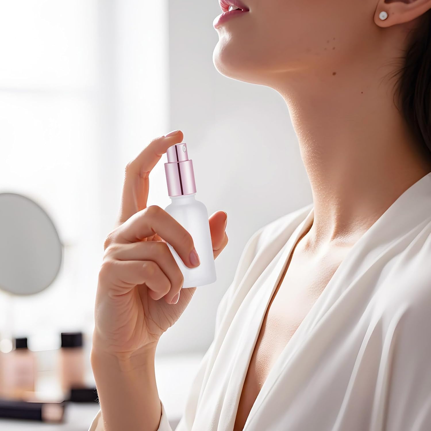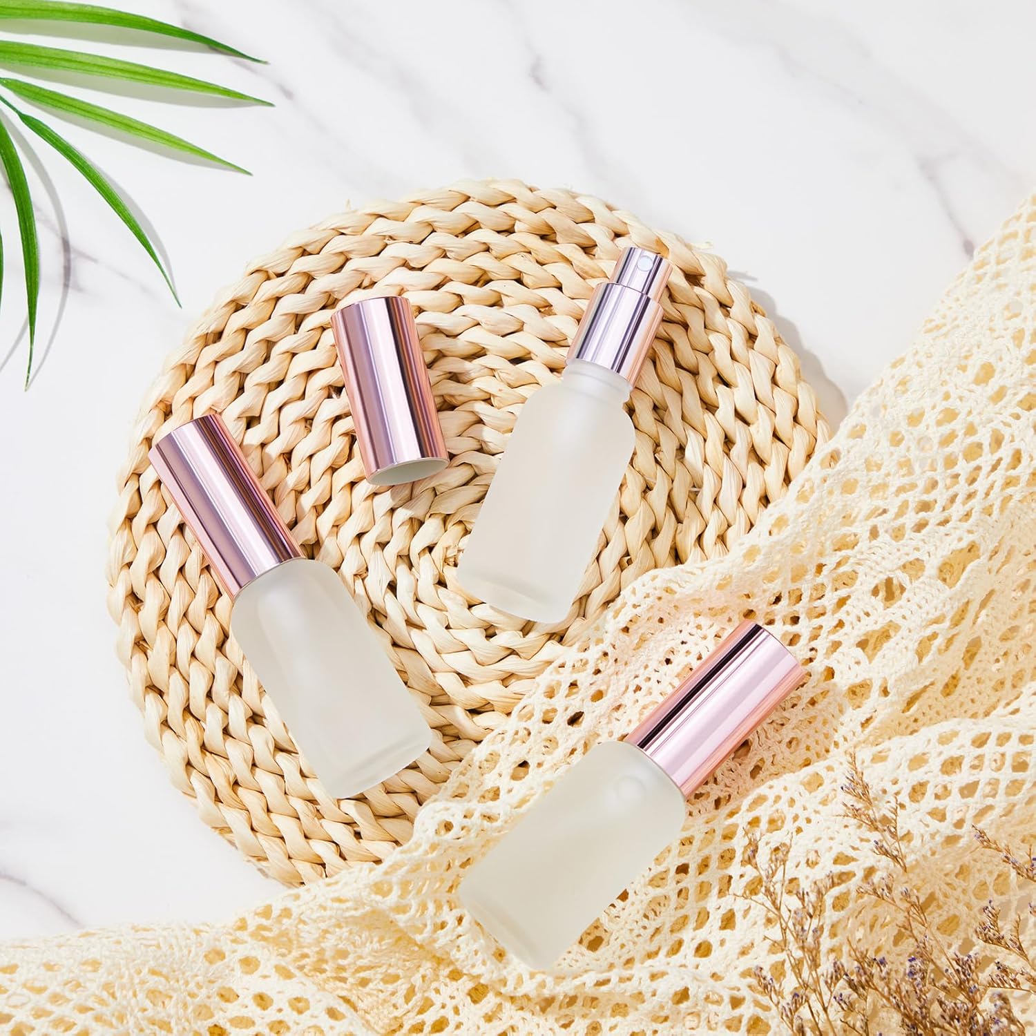 - Elegant Frosted Design: our fine mist spray bottles are designed with frosted glass body and rose gold cap cover, which is exquisite and elegant, not only a perfume bottle, but also a good ornament on your dressing table, and the frosted design can avoid inner liquid contact with light directly, bringing convenience to your storage