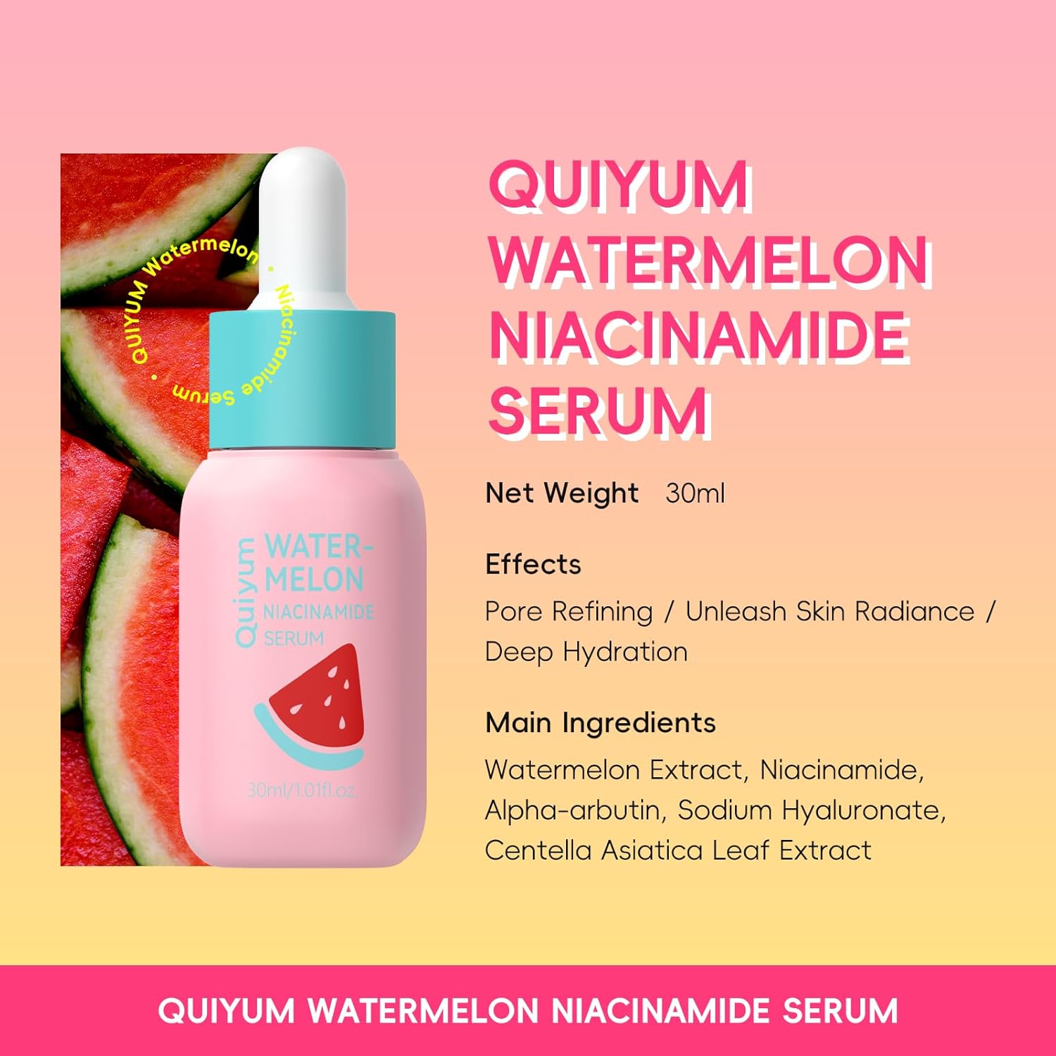- Viral on Social: Quiyum Watermelon Niacinamide Serum for face is viral on social medium, popular with women,teenagers. A perfect gift for friends, family. Enjoy the high-quality face serum as a skincare routine. Indulge in yourself everyday