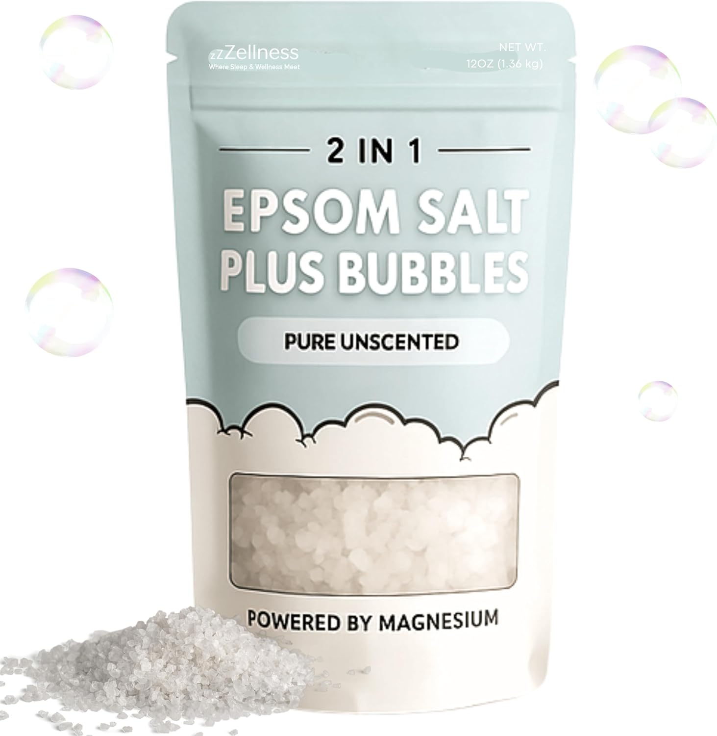 Epsom Salt Plus Bubbles β Pure Unscented Foaming Bath Soak β Magnesium Sulfate for Muscle Recovery, Stress Relief & Relaxation β Great for Aromatherapy β 12 oz
