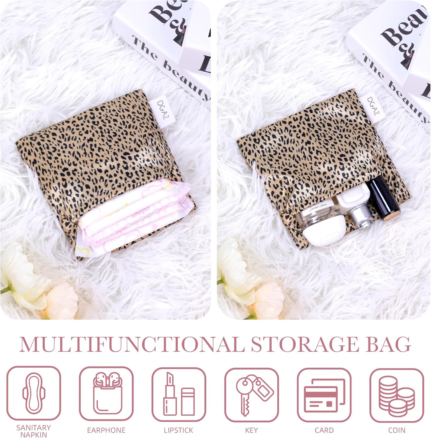 DGAZ Sanitary Napkin Storage Bag, Period Bag for Teen Aged Girls, Portable Period Bag for Panty Liners/Menstrual Cup/Small Tampons,Mini Makeup Bag for Purse(Leopard C)